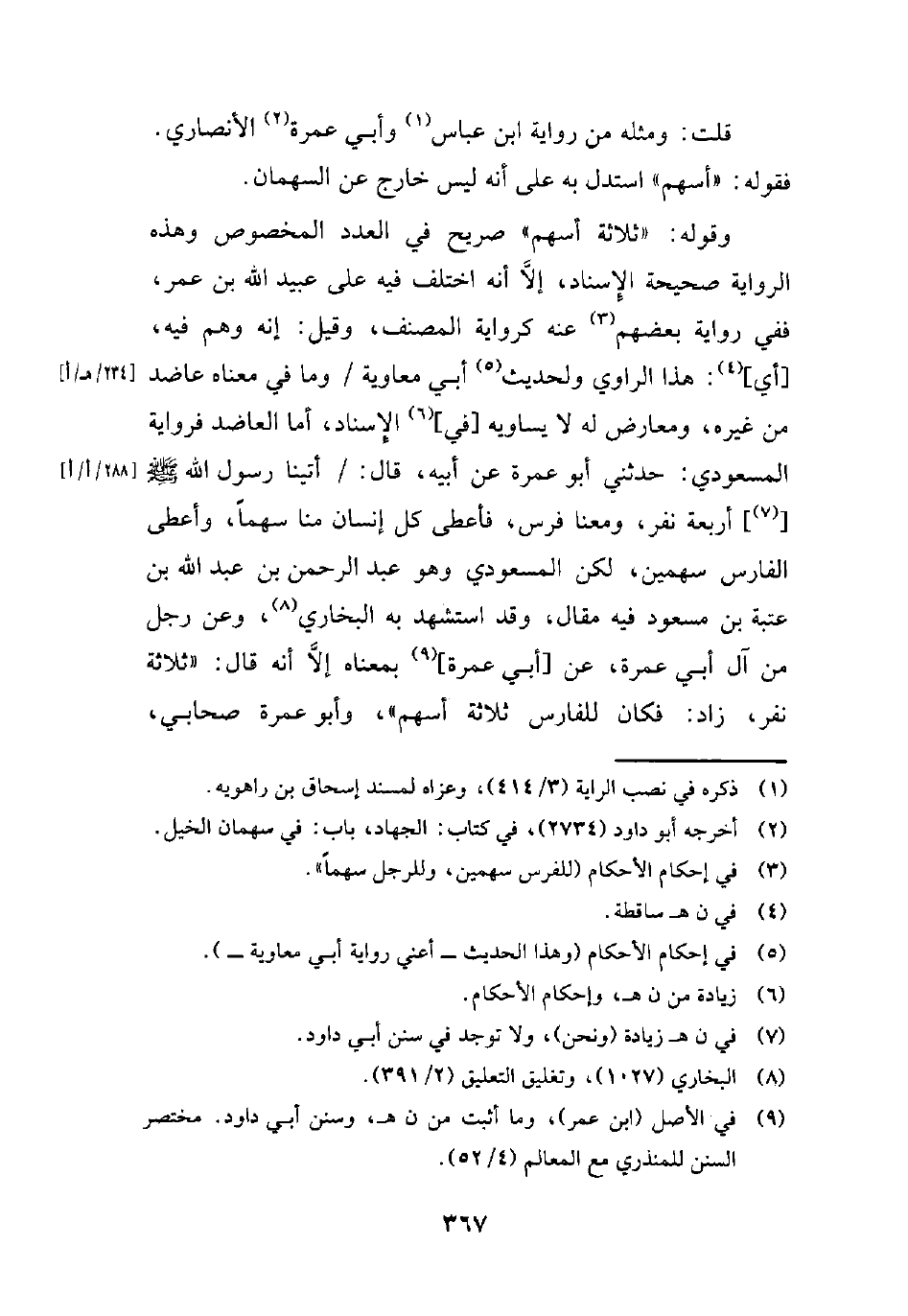 (¬3) في إحام الأحكام (للفرس سهمين، وللرجل سهمًا).