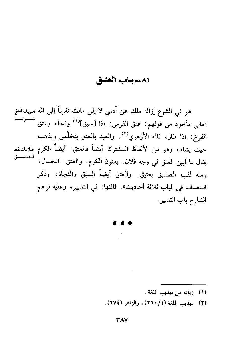 (¬2) تهذيب اللغة (1/ 210)، والزاهر (274).