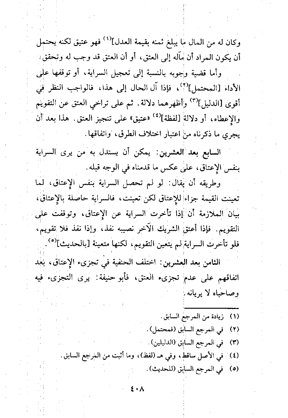 الثامن بعد العشرين: اختلف الحنفية في تجزئ الإِعتاق, بعد اتفاقم على عدم تجزئ العتق، فأبو حنيفة: يرى التجزىء فيه وصاحباه لا يريانه.