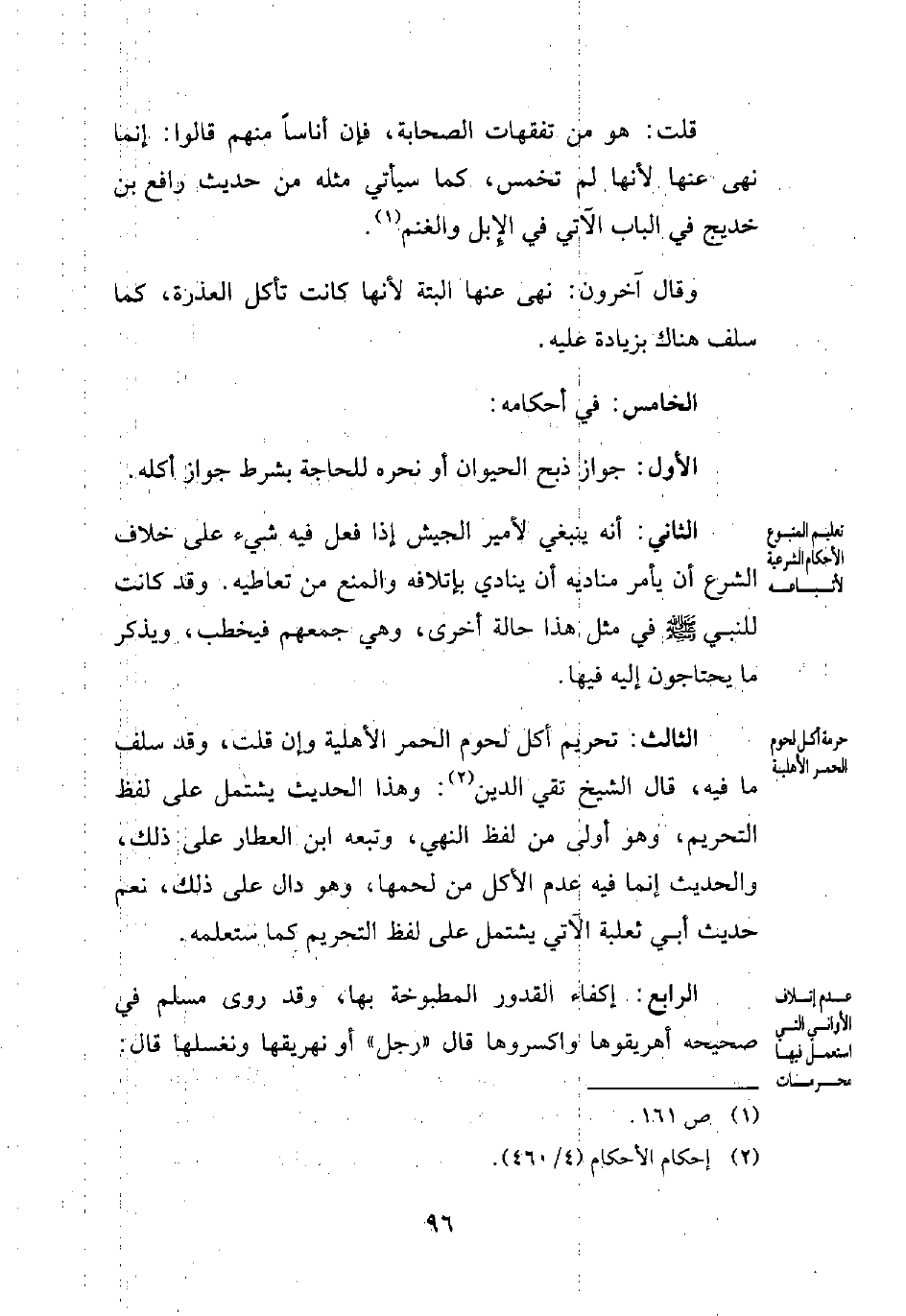 الرابع: إكفاء القدور المطبوخة بها، وقد روى مسلم في صحيحه أهريقوها واكسروها قال "رجل" أو نهريقها ونغسلها قال: