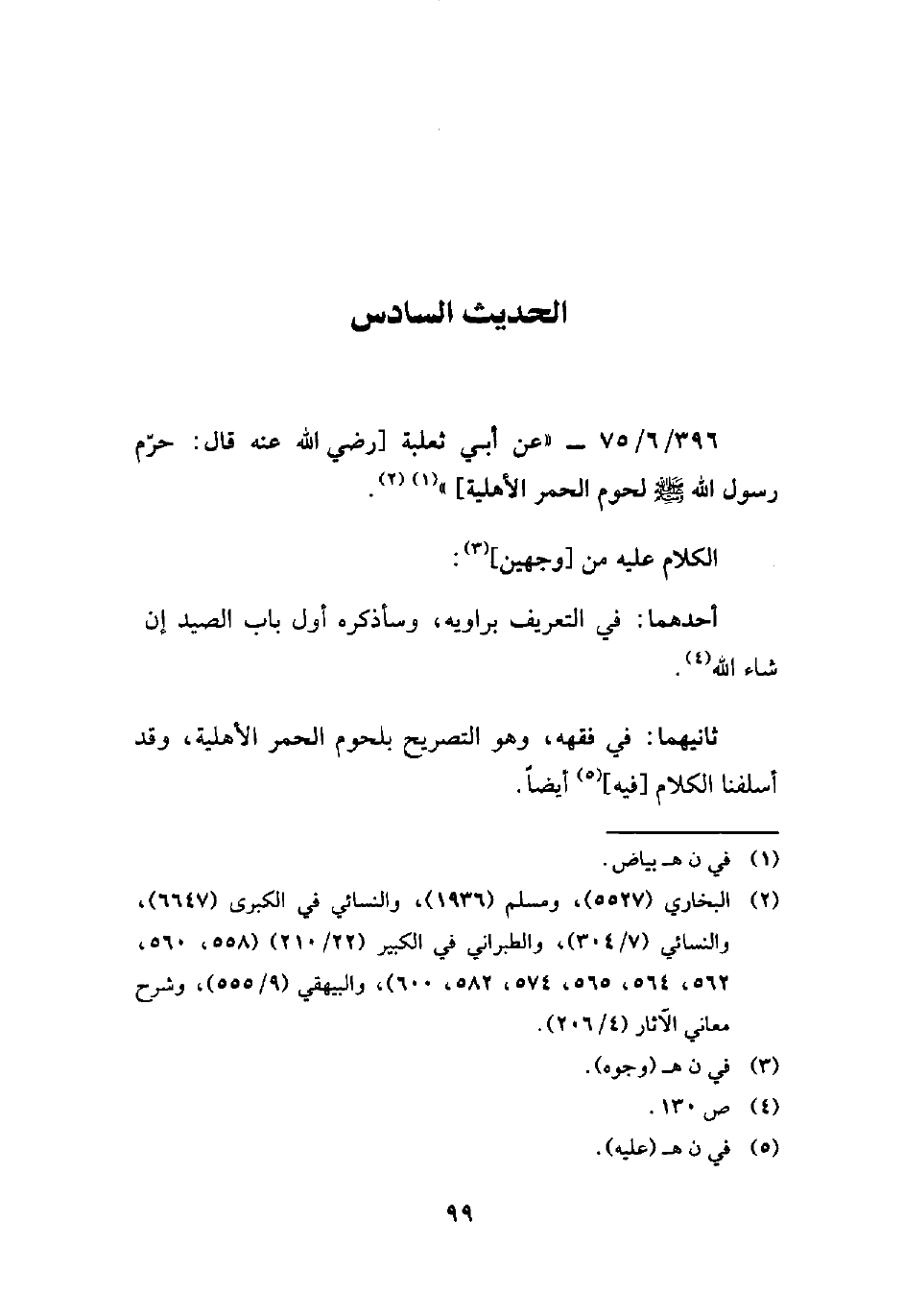 396/ 6/ 75 - " عن أبي ثعلبة [رضي الله عنه قال: رسول الله - صلي الله عليه وسلم - لحوم الحمر الأهلية] " (¬1) (¬2).