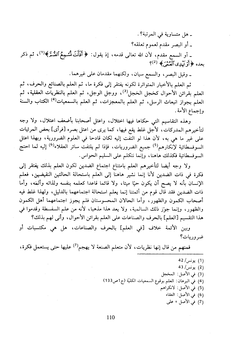 - أو السمع مقدم، لأن الله تعالى قدمه، إذ يقول: (أفأنت تُسمع الصم)، ثم ذكر بعده (أو تهدى العمى)؟