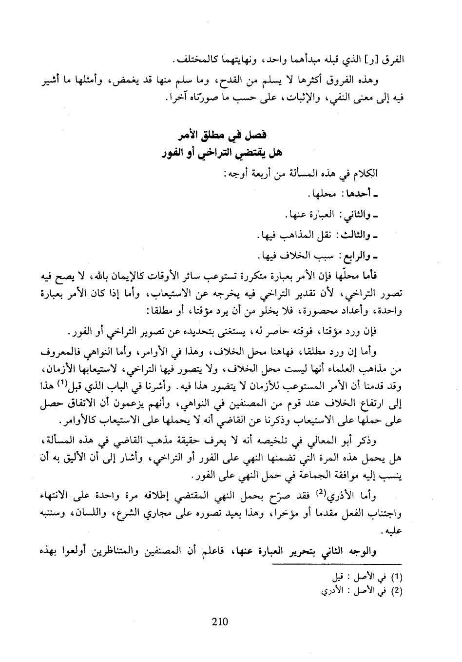 فصل في مطلق الأمر هل يقتضي التراخي أو الفور