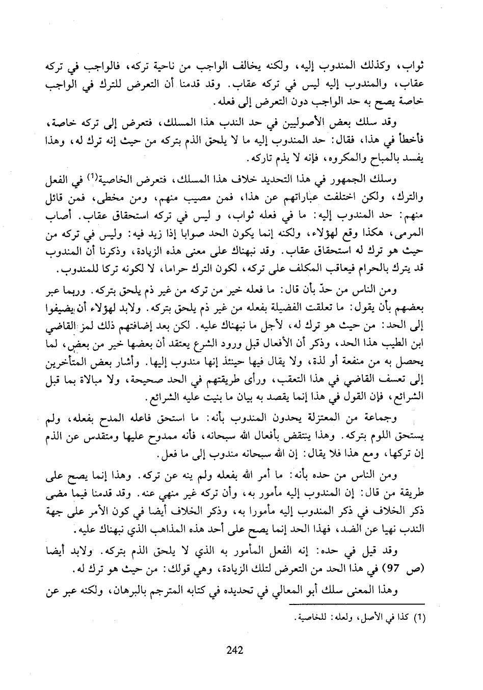 وقد قيل في حده: إنه الفعل المأمور به الذي لا يلحق الذم بتركه. ولابد أيضا (ص ٩٧) في هذا الحد من التعرض لتلك الزياة، وهي قولك: من حيث هو ترك له.