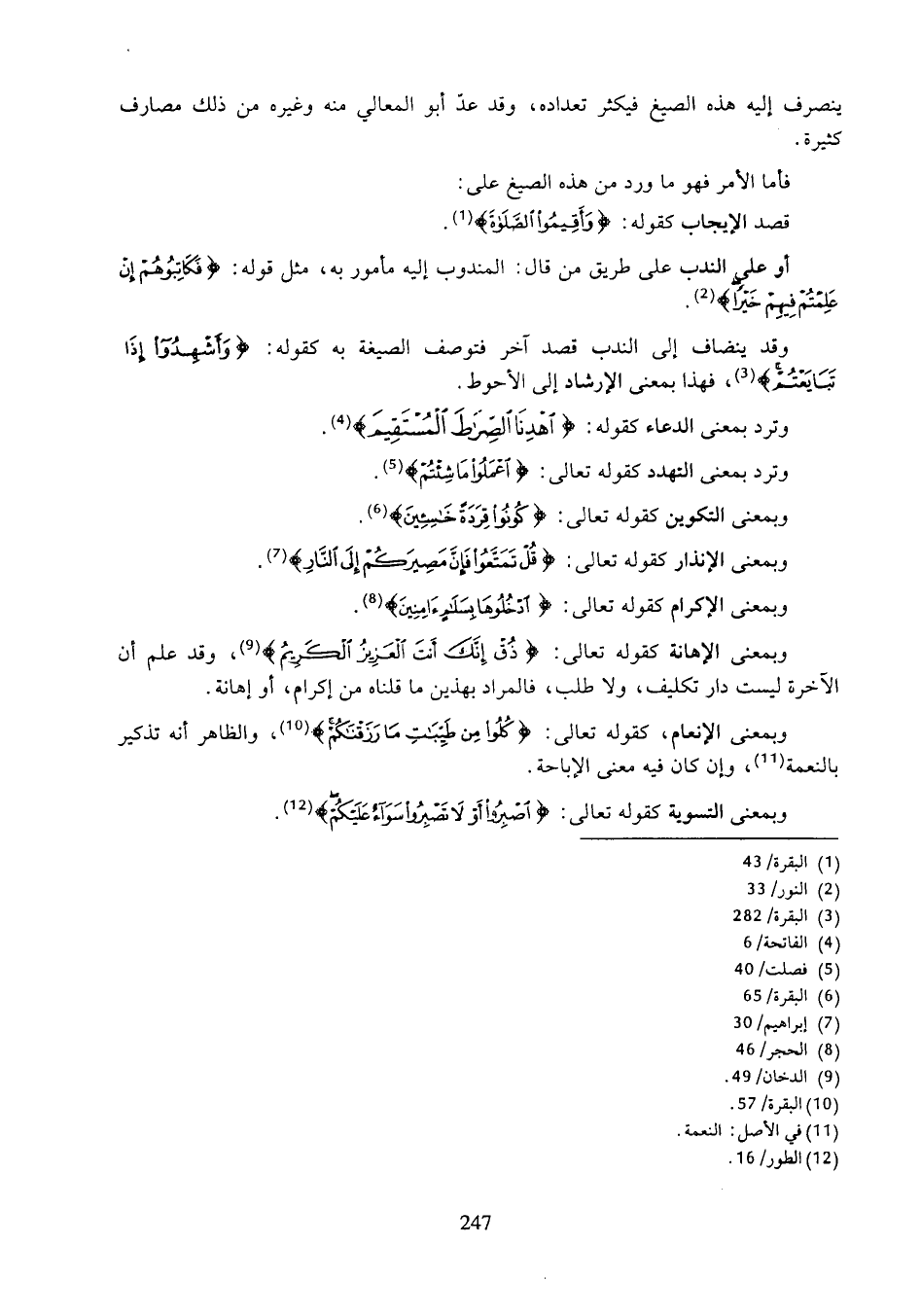 ينصرف إليه هذه الصيغ فيكثر تعداده، وقد عد أبو المعالي منه وغيره من ذلك مصارف كثيرة.