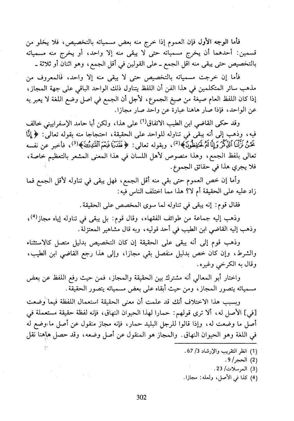 واختار أبو المعالي أنه مشترك بين الحقيقة والمجاز، فمن حيث رفع اللفظ عن بعض مسمياته يتصور المجاز، ومن حيث أبقاه على بعض مسمياته يتصور الحقيقة.