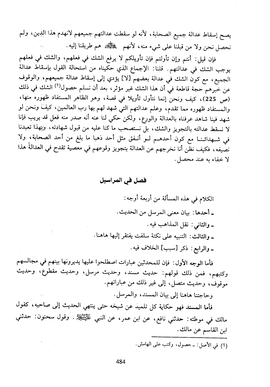 وحاجتنا هاهنا إلى بيان المسند، والمرسل.
