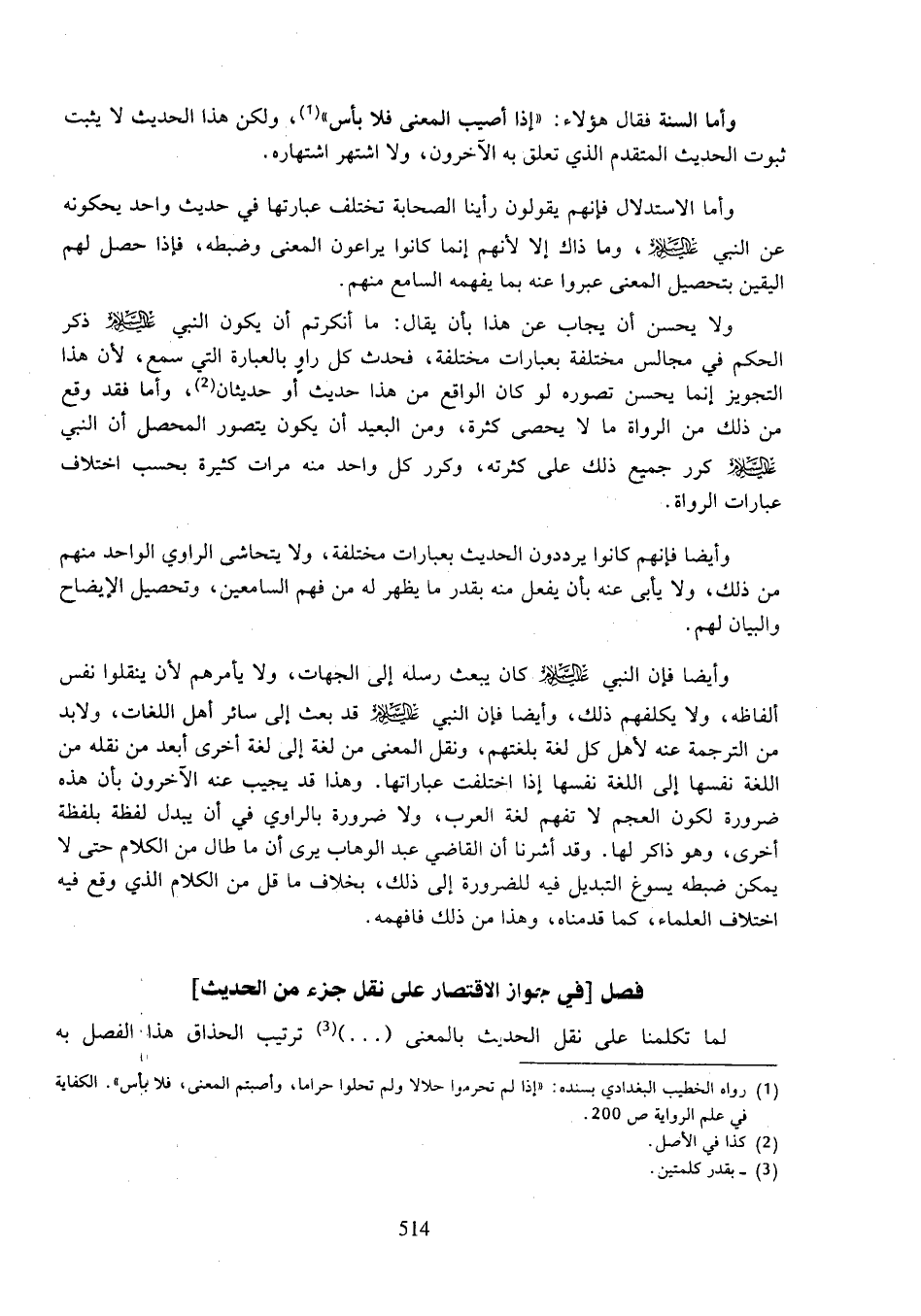 لما تكلمنا على نقل الحديث بالمعنى (...) ترتيب الحذاق هذا الفصل به