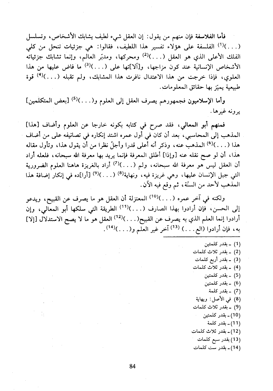 وأما الإسلاميون فجمهورهم يصرف العقل إلى العلوم و (...) [بعض المتكلمين] يرونه غيرها.