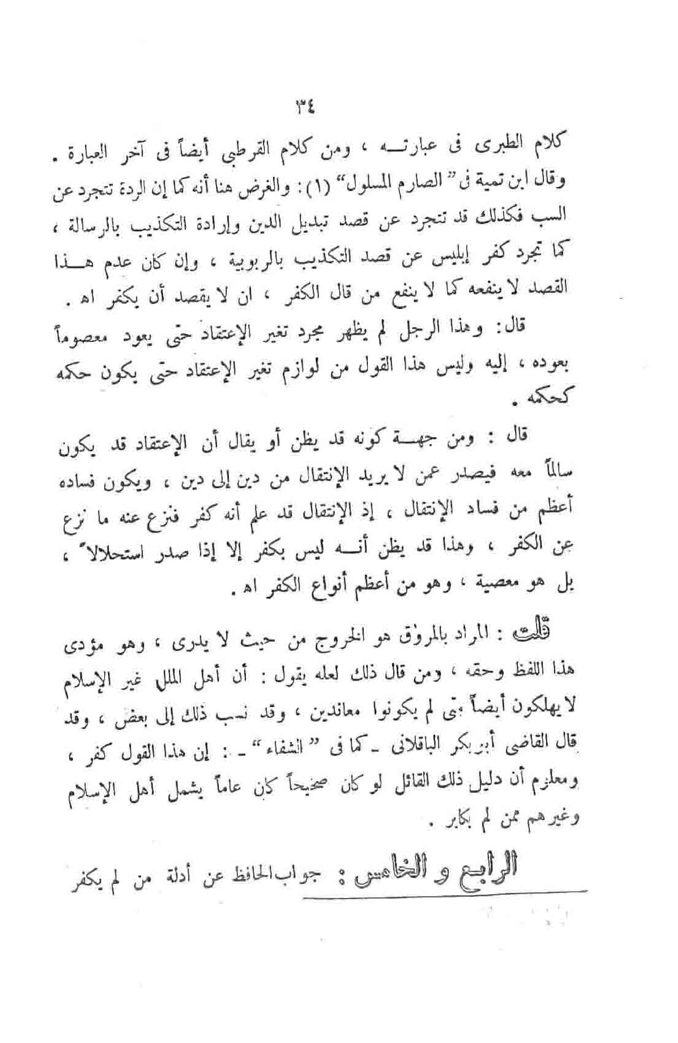 الرابع والخامس: جواب الحافظ عن أدلة من لم يكفر