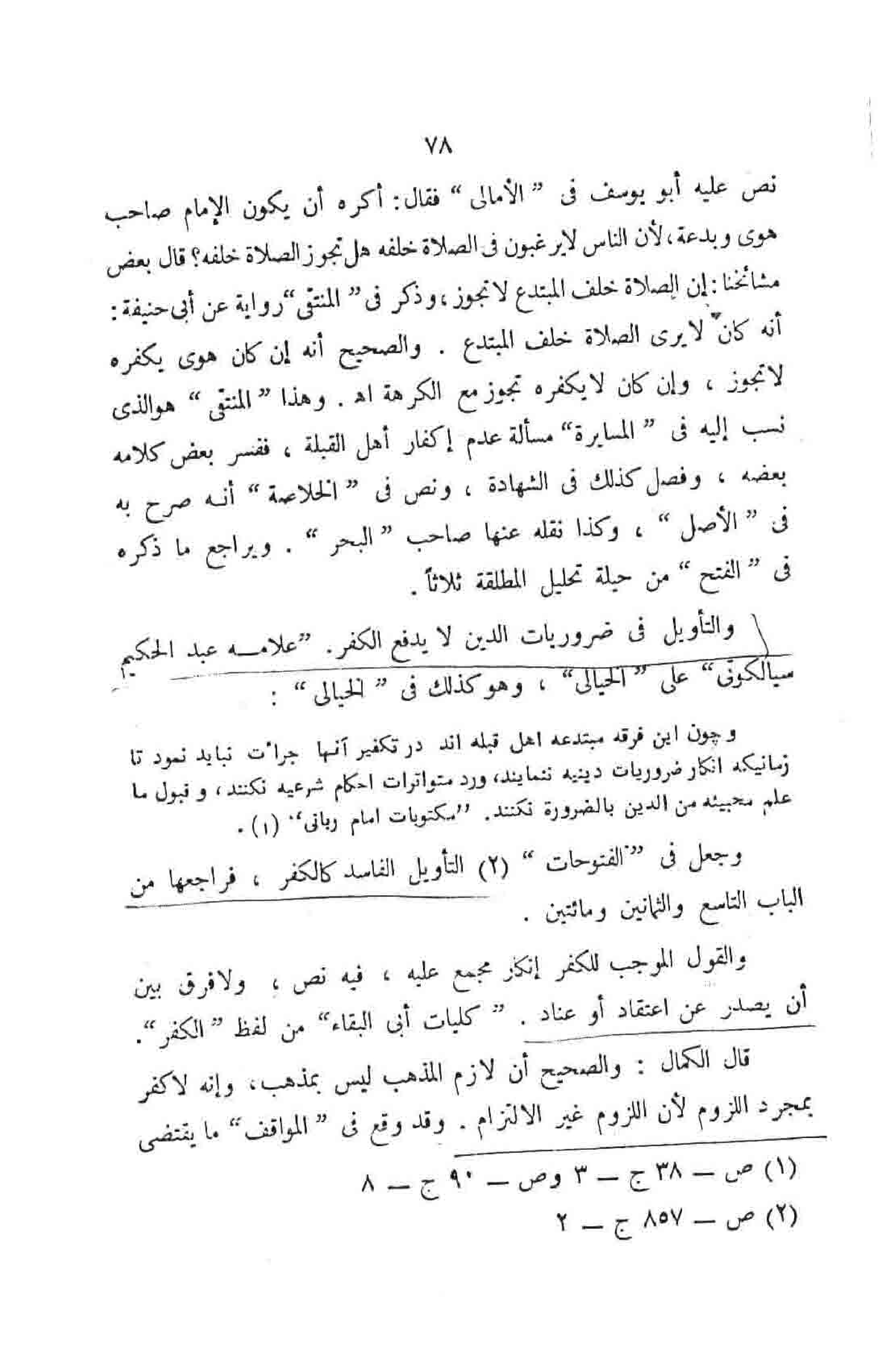 والتأويل في ضروريات الدين لا يدفع الكفر. "علامه عبد الحكيم سيالكوتى" على "الخيالي"، وهو كذلك في "الخيالي":