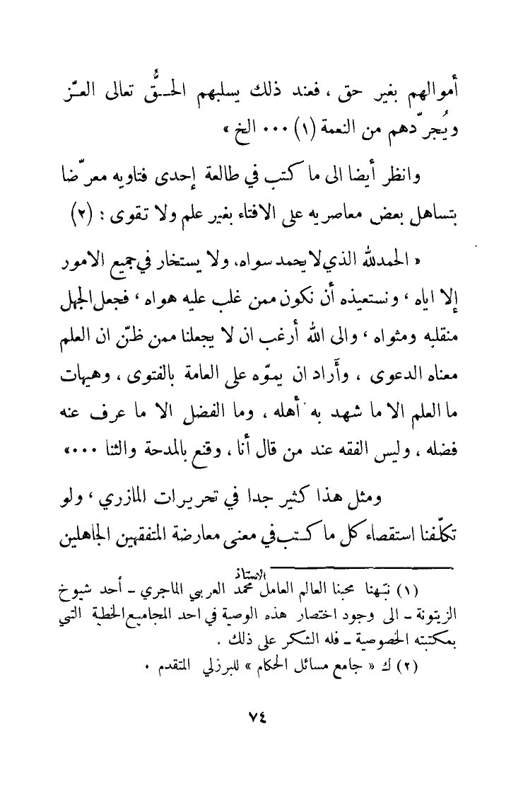 ومثل هذا كثير جِدًّا في تحريرات المازري، ولو تكلفنا استقصاء كل ما كتب في معنى معارضة المتفقهين الجاهلين