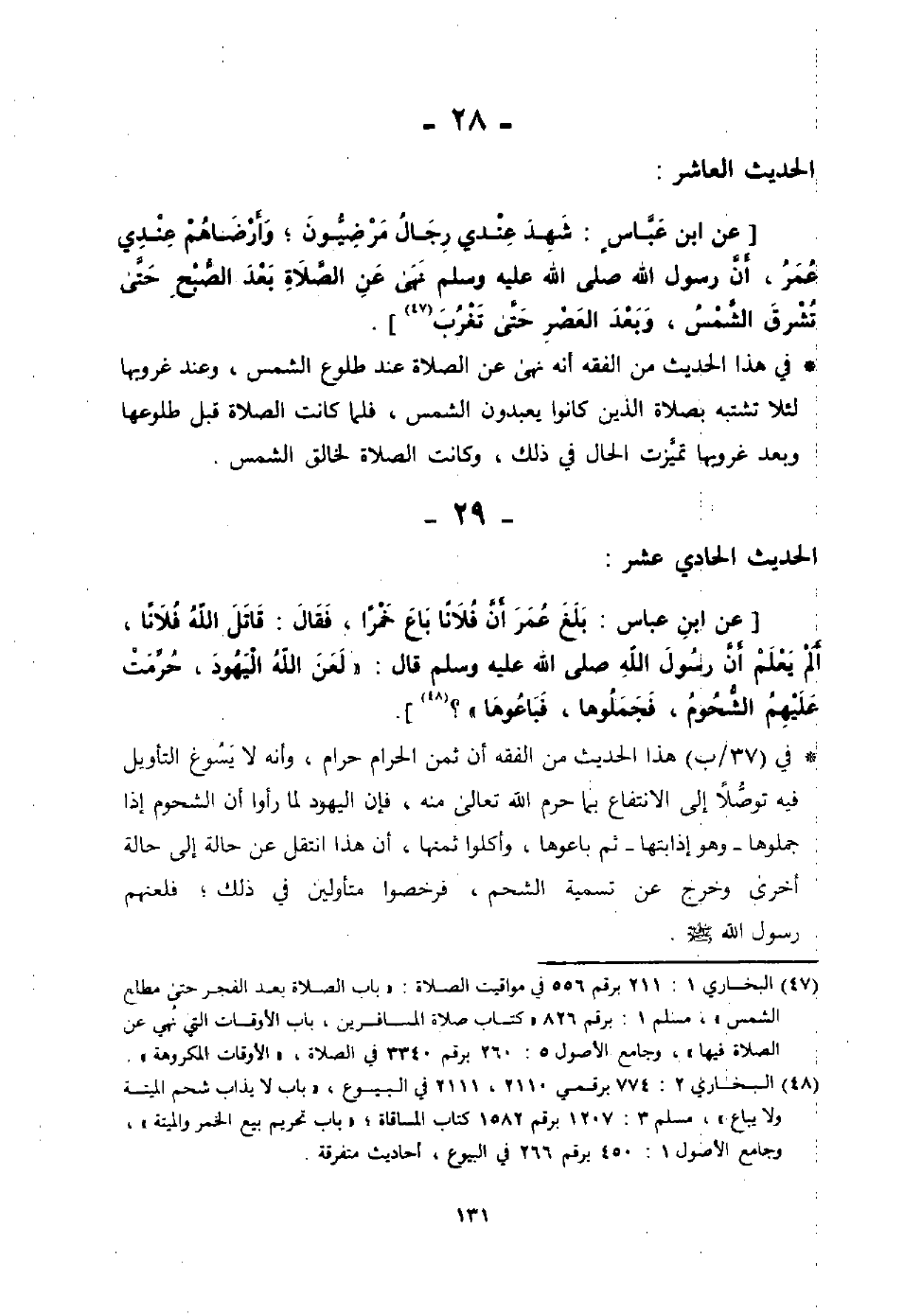 عليه وسلم، فقلت: يا رسول الله فدخلت على حفصة، فقتل: لا يغرنك أن كانت جارتك هي أوسم وأحب إلى رسول الله صلى الله عليه وسلم منك، فتبسم أخرى، فقلت: أستأنس يا رسول الله؟ قال: نعم، فجلست، فرفعت رأسي في البيت، فوالله ما رأيت شيئًا يرد البصر إلا أهبة ثلاثة، فقلت: ادع الله أن يوسع على أمتك؛ فقد وسع على فارس والروم، وهم لا يعبدون الله، فاستوى جالسا، ثم قال: (أفي شك أنت يا ابن الخطاب؟ أولئك قوم عجلت لهم طيباتهم في الحياة الدنيا) فقلت: استغفر لي، يا رسول الله. وكان أقسم أن لا يدخل عليهن شهرًا من أجل ذلك الحديث الذي أفشته حفصة إلى عائشة- من شدة موجدته عليهن- حتى عاتبه الله تعالى.