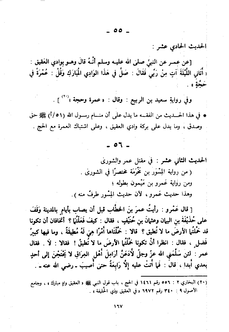 [عن ابن عمر قال: لما فتح هذان المصران، أتوا عمر بن الخطاب، فقالوا: يا أمير المؤمنين، إن رسول الله صلى الله عليه وسلم حد لأهل نجد قرنًا، وإنه جور عن طريقنا، وإنا إن أردنا أن نأتي قرنًا شق علينا! قال فانظروا حذوها من طريقكم، قال: فحد لهم ذات عرق].