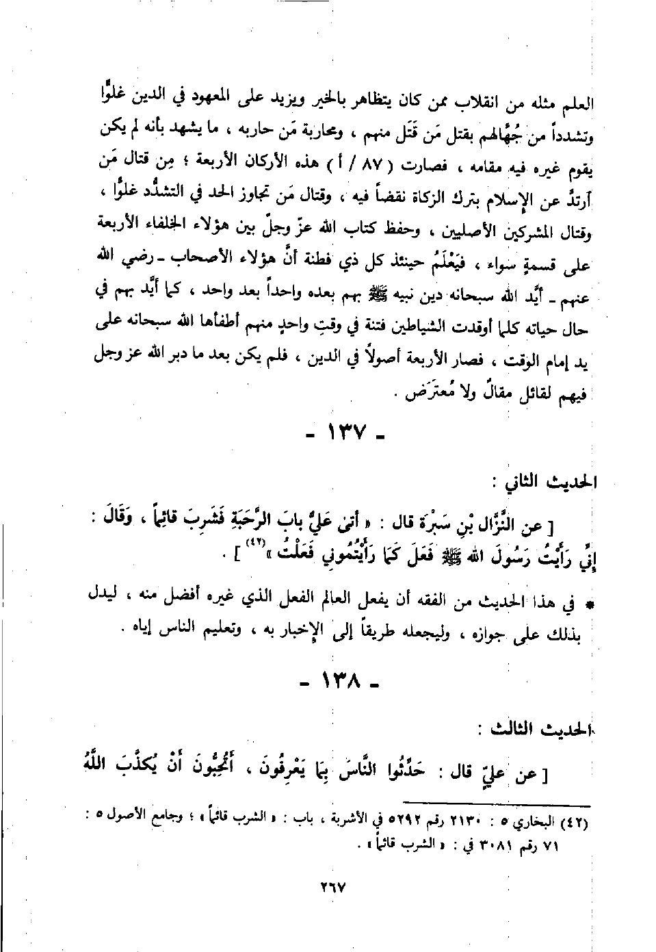 شيء من الوحي مما ليس في القرآن؟ فقال: لا والذي فلق الحبة، وبرأ النسمة إلا فهمًا يعطيه الله رجًلا في القرآن، وما في هذه الصحيفة. قلت: وما في هذه الصحيفة؟ قال: العقل، وفكاك الأسير، وأن لا يقتل مسلم بكافر].