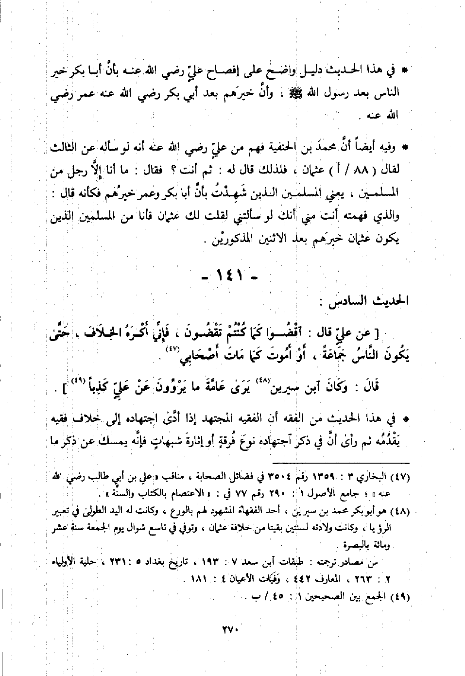 [عن علي قال: ما كنت لأقيم حدًا على أحد فيموت فأجد في نفسي منه شيئًا إلا صاحب الخمر، فإنه لو مات وديته وذلك أن رسول الله - صلى الله عليه وسلم - لم يسنه].