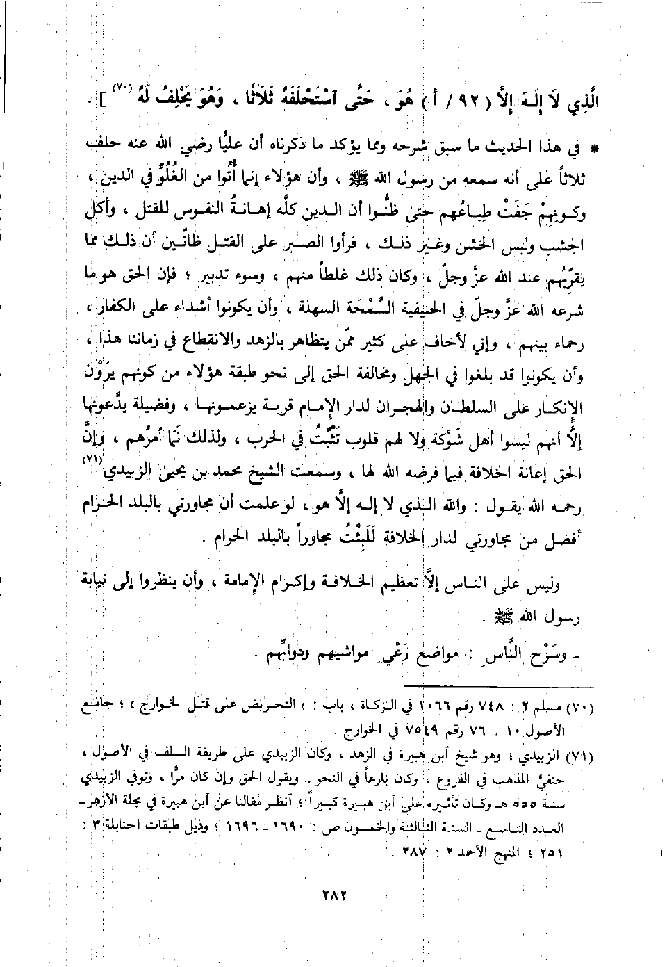 وأعلم أنه من أحدث في الدين فقد أتى عظيمًا، ومن آواه فكأنه صار وقاية للمحدث فهو شريكه في المغنى إذا علم بإحداثه. وأما تغيير منار الأرض قد يكون بين الشريكين فلا يحل لأحد الشريكين أن يقدم الحد ولا يؤخره (89/ ب) وقد يكون أيضًا من الأعلام في الطرق التي يهتدي بها المسافرون، فلا يحل لأحد تغييرها فيؤول إلى إضلال الناس عن طريقهم ومقاصدهم.
