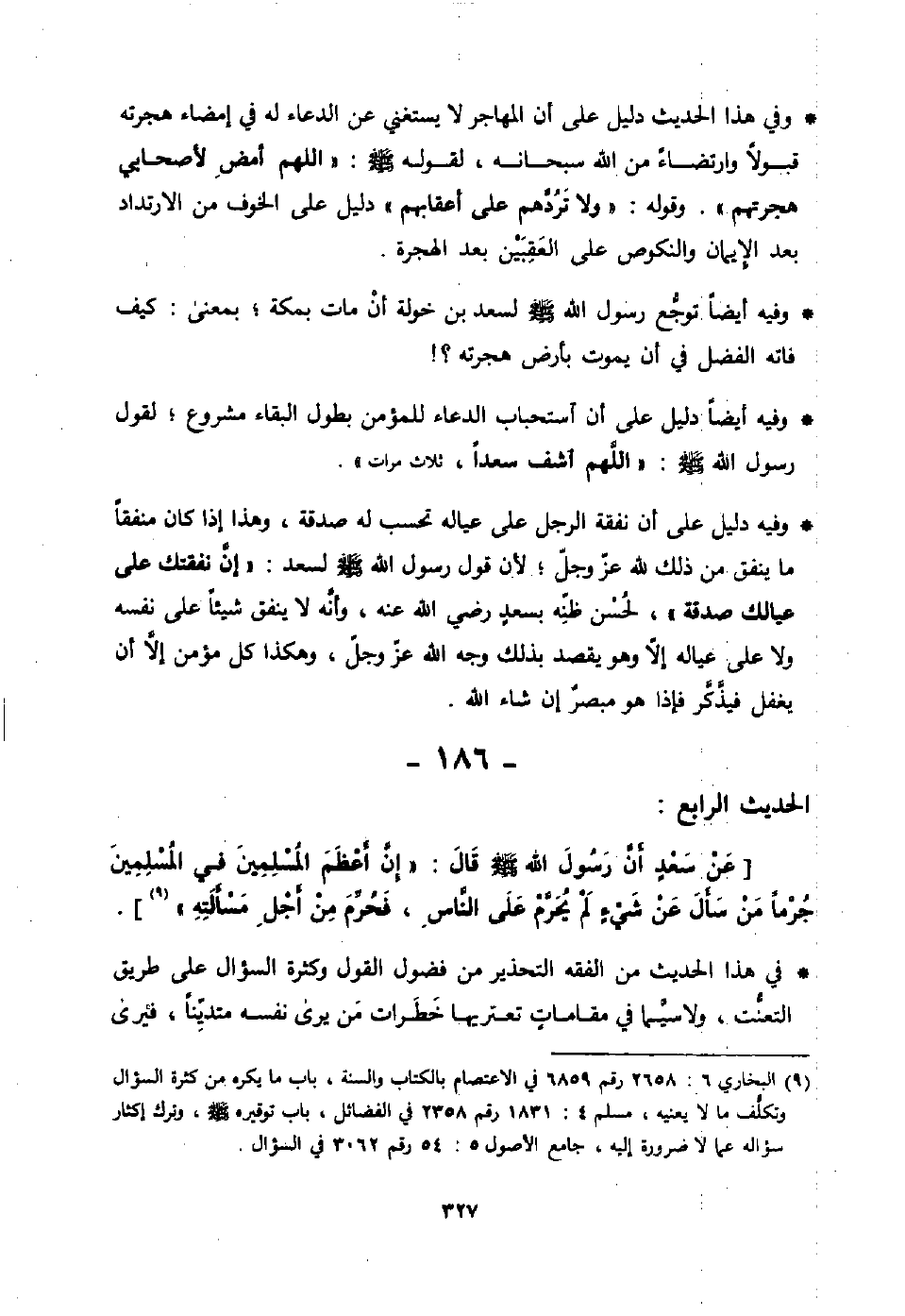 عمارًا، فشكوا حتى ذكروا أنه لا يحسن يصلي، فأرسل إليه فقال: يا أبا إسحاق، إن هؤلاء يزعمون أنك لا تحسن تصلي، فقال: أما أنا والله فإني كنت أصلي بهم صلاة رسول الله - صلى الله عليه وسلم - لا أخرم عنها، أصلي صلاة العشي فأركد في الأولين، وأخف في الأخريين: قال: ذاك الظن بك يا أبا إسحاق، فأرسل معه رجلا- أو رجالا- إلى الكوفة، فسأل عنه أهل الكوفة؛ فلم يدع مسجدًا إلا سأل عنه، ويثنون معروفًا، حتى دخل مسجدًا لبني عبس، فقام رجل منهم، يقال له أسامة بن قتادة، يكني أبا سعدة. فقال: أما إذا نشدتنا، فإن سعدًا كان لا يسير بالسرية، ولا يقسم بالسوية، ولا يعدل في القضية. قال سعدك أما والله لأدعون بثلاث: اللهم إن كان عبدك هذا كاذبًا، قام رياء وسمعة، فأطل عمره، وأطل فقره، وعرضه للفتن .. فكان بعد ذلك إذا سئل يقول: شيخ كبير مفتون، أصابتني دعوة سعد.