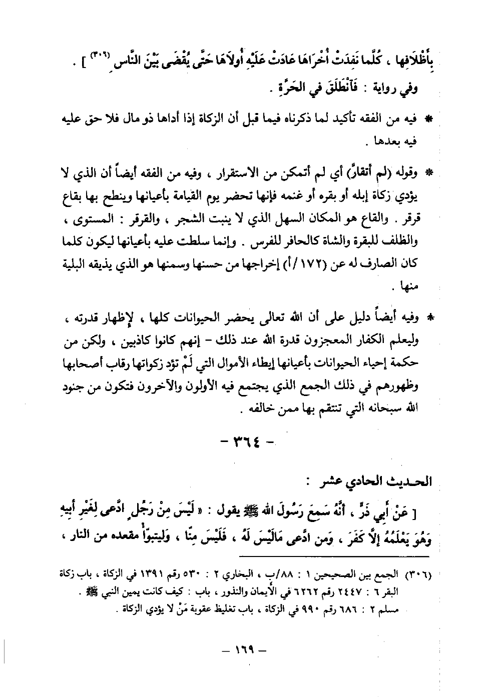 [عن الأحنف بن قيس قال: قدمت المدينة. فبينما أنا في حلقة فيها ملأ من قريش، إذ جاء رجل أخشن الثياب، أخشن الجسد، أخشن الوجه فقام عليهم فقال: (بشر الكانزين برضف يحمى عليه في نار جهنم، فيوضع على حلمة ثدي أحدهم حتى (170/ أ) يخرج من نغض كتفيه. ويوضع على نغض كتفيه حتى يخرج من حلمة ثدييه، يتزلزل قال: فوضع القوم رءوسهم، فما رأيت أحدًا منهم رجع إليه شيئًا، قال: فأدبر، واتبعته حتى جلس إلى سارية، فقلت: ما رأيت هؤلاء إلا كرهوا ما قلت لهم. فقال: إن هؤلاء لا يعقلون شيئًا، إن خليلي أبا القاسم - صلى الله عليه وسلم - دعاني فأجبته فقال: (أترى أحدًا؟) فنظرت ما علي من الشمس وأنا أظن أنه يبعثني في حاجة له، فقلت: أراه فقال: (ما يسرني أن لي مثله ذهبًا، أنفقه كله إلا ثلاثة دنانير) ثم هؤلاء يجمعون الدنيا لا يعقلون شيئًا. قال: قلت: مالك