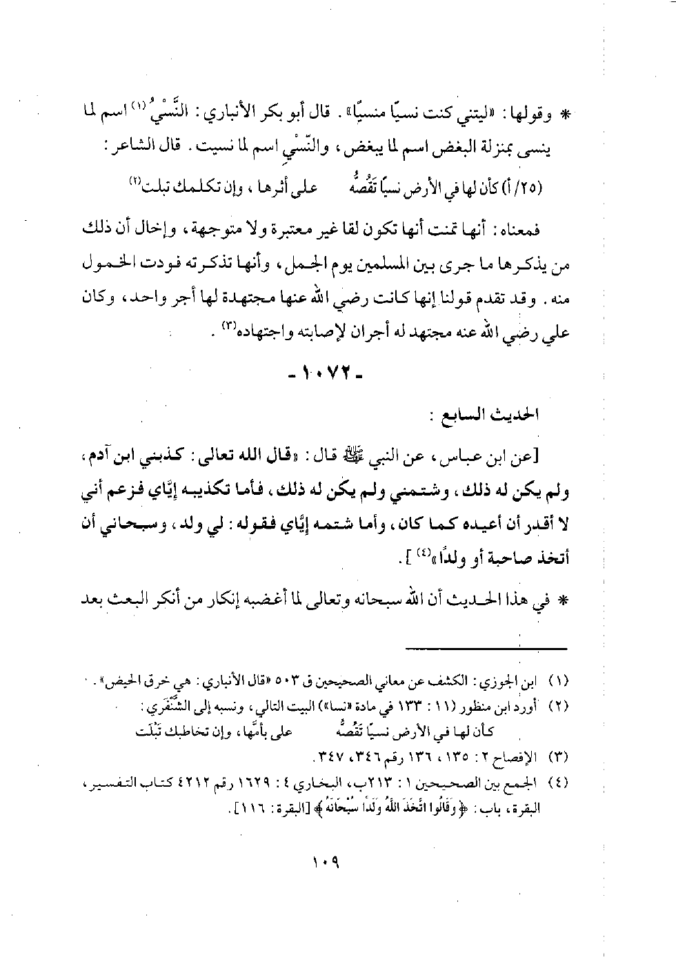 (عن ابن عباس قال: (يا معشر المسلمين، كيف تسألون أهل الكتاب عن شيء؟ وكتابكم الذي أنزل الله على نبيكم أحدث الأخبار بالله، تقرؤونه محضًا لم يُشَبْ، وقد حدثكم الله أن أهل الكتاب بَدَّلوا ما كتب الله، وغيروه، وكتبوا بأيديهم الكتاب، وقالوا: هو من عند الله ليشتروا به ثمنًا قليلاً؟ أفلا ينهاكم ما جاءكم من العلم عن مسألتهم؟ ولا والله، ما رأينا منهم رجلاً قط يسألكم عن الذي أنزل عليكم).