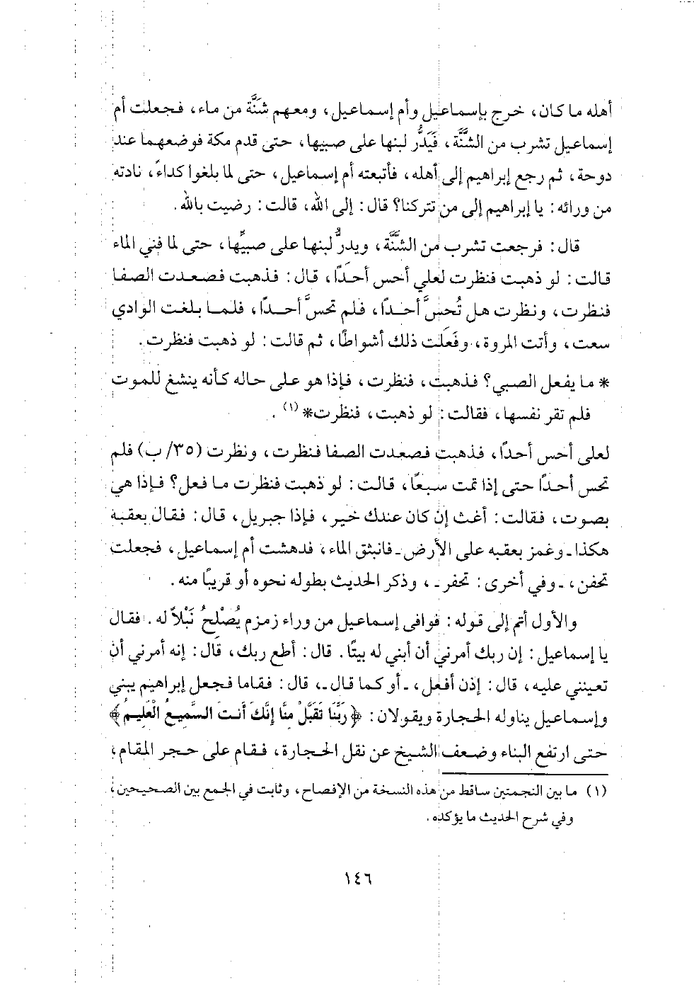 عليه امرأة إسماعيل النزول، فأبى أن ينزل، فجاءت بهذا الحجر، فقال: ليس كذلك).