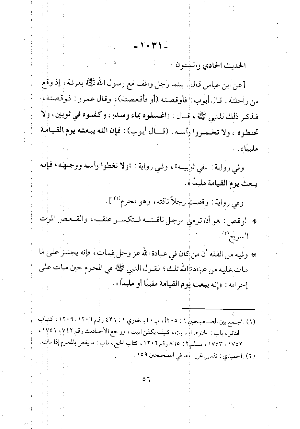 وفي رواية لمسلم من حديث عمار بن أبي عمار قال: سألت ابن عباس: كم أتي الرسول - صلى الله عليه وسلم - يوم مات؟ قال: ما كنت أحسب مثلك من قومه يخفى عليه ذلك. قال: قلت: إني قد سألت الناس فاختلفوا عليَّ، فأحببت أن أعلم قولك فيه. قال: أتحسب؟ قلت: نعم. قال: أمسك أربعين. بعث لها خمس عشرة بمكة. يأمن ويخاف، وعشرًا مهاجرة إلى المدينة.