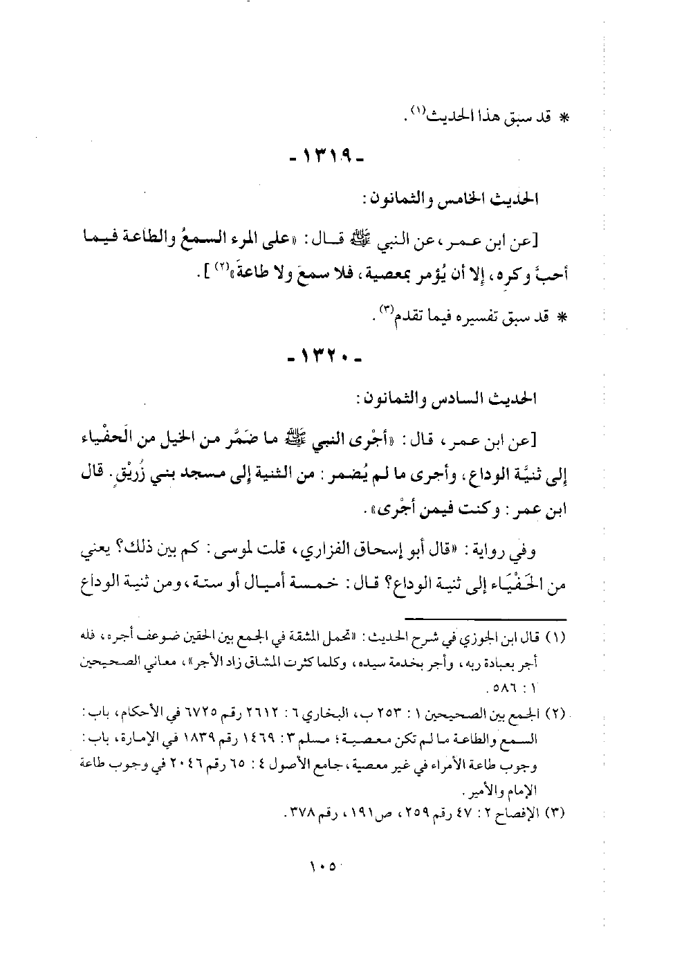 *كذا وقع في كتاب الحميدي: وعرضت عليه يوم الفتح، وهو سهو من الحميدي رضي الله عنه، قلد فيه سواه لأنه كذلك ذكره أبو سعود في تعليقه، ثم تبعه خلف فذكره كذلك أيضاً، ثم تبعهما الحميدي في ذلك من غير تدبر للمنقول، فالعجب من يتكرر سماع هذا عليه ممن له عناية بالحديث كيف يخفى عنه هذا. والصحيح: وعرضت عليه يوم الخندق، ولذلك أخرجه البخاري ومسلم في الصحيحين يوم الخندق، وبيان الغلط الذي ذكرناه أن غزاه أحد كانت في سنة ثلاث، وغزاة الفتح كانت في سنة ثمان، فمن