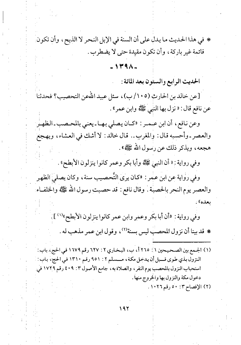 عن زياد بن جبير، قال: كنت مع ابن عمر، فسأله رجل فقال: إني نذرت أن أصوم كل ثلاثاء أو أربعاء ما عشت، فرافقت هذا اليوم يوم النحر، قال: أمر الله بوفاء النذر، ونهينا أن نصوم يوم النحر، فأعاد عليه فقال مثله، لا يزيد عليه).