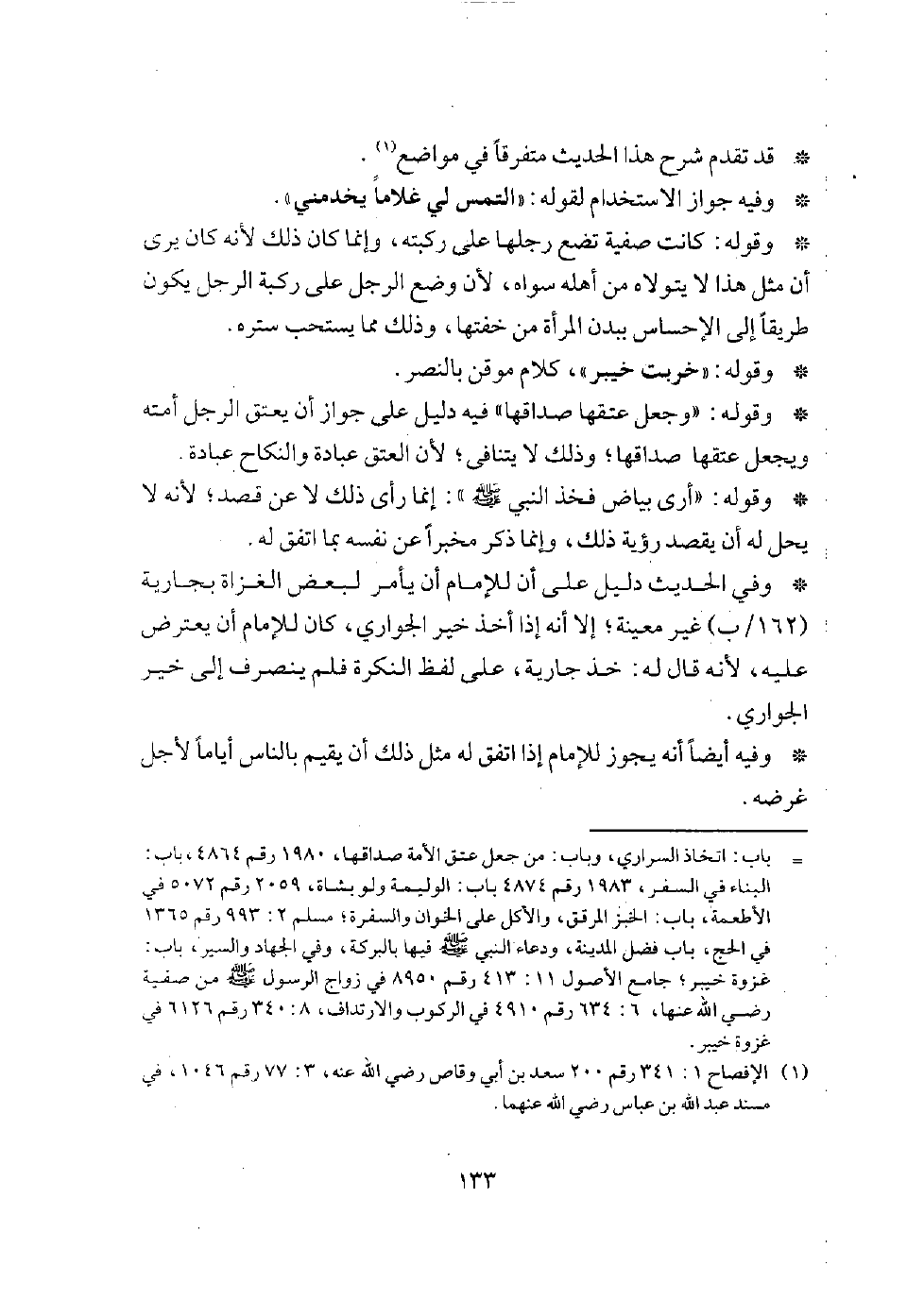 قال (160/ب): والخميس: الجيش-فظهر رسول الله - صلى الله عليه وسلم - عليهم، فقتل المقاتلة، وسبى الذراري، صارت صفية لدحية الكلبي، وصارت لرسول الله - صلى الله عليه وسلم - ثم تزوجها، وجعل عتقها صداقها، فقال عبد العزيز لثابت: يا أبا محمد، أنت سألت أنسا ما مهرها؟ قال: أمهرها نفسها، فتبسم).