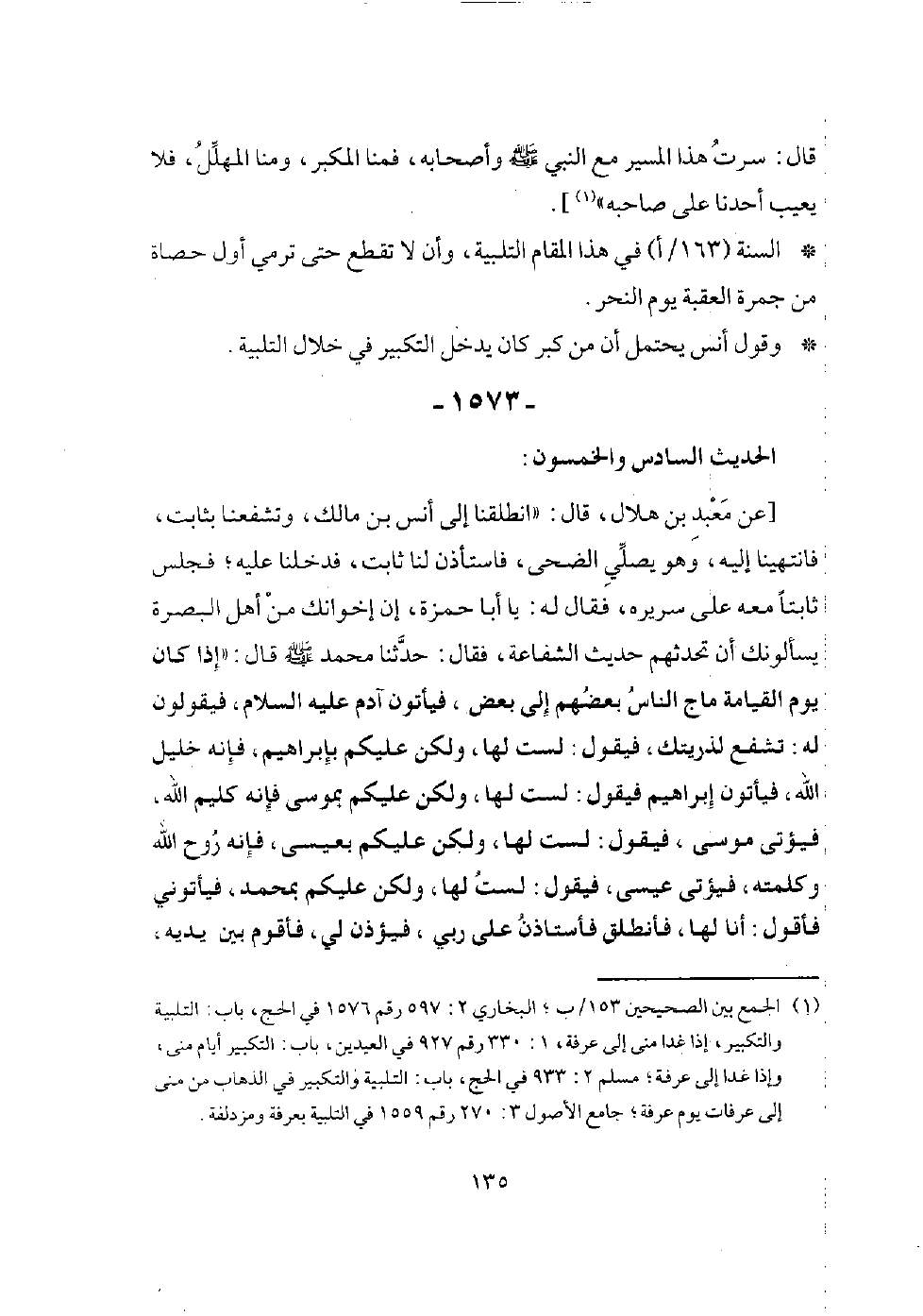 وفي رواية: (كنت ردف أبي طلحة يوم خيبر، وقدمي تمس قدم النبي - صلى الله عليه وسلم - قال: فأتينا حين بزغت الشمس، وقد أخرجوا مواشيهم، وخرجوا بفؤوسهم ومكاتلهم، ومرورهم، فقالوا: هذا محمد والخميس، قال: وقال رسول الله - صلى الله عليه وسلم - (خربت خيبر، إنا إذا نزلنا بساحة قوم فساء صباح المنذرين)، قال: وهزمهم الله، ووقعت في سهم دحية جارية جميلة، فاشتراها رسول الله - صلى الله عليه وسلم - بسبعة أرؤس، ثم دفعها (161/ب) إلى أم سليم تصنعها وتهيئها، (قال: وأحسبه قال) وتعتد في بيتها، وهي صفية بنت حيي، قال: فجعل رسول الله - صلى الله عليه وسلم - وليمتها التمر والأقط والسمن فحصت الأرض أفاحيص، وجيء بالأنطاع، فوضعت فيها، وجيء بالأقط والسمن، فشبع الناس قال: وقال الناس: لا ندري أتزوجها، أم اتخذها أم ولد؟ قالوا: إن حجبها فهي امرأته، وإن لم يحجبها فهي أم ولد، فلما أراد أن يركب حجبها، فقعدت على عجز البعير، فعرفوا أنه قد تزوجها، فلما دنوا من المدينة دفع رسول الله - صلى الله عليه وسلم - ودفعنا، قال: