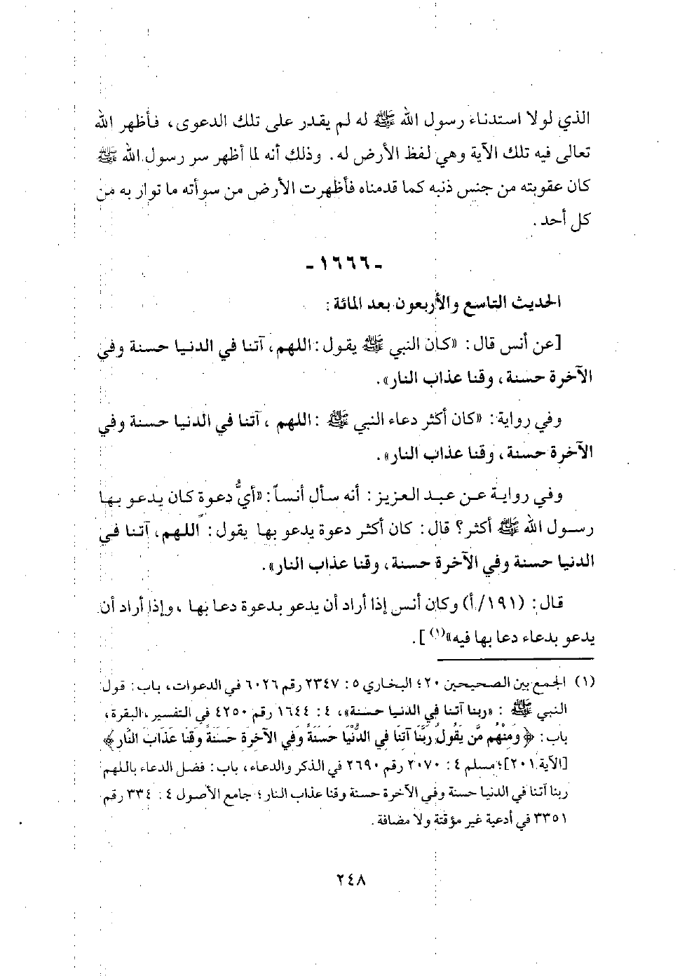 [عن عبد العزيز بن رفيع قال: سألت أنس بن مالك، قلت: أخبرني بشيء عقلته عن رسول الله - صلى الله عليه وسلم -، أين صلى الظهر والعصر يوم التروية؟ قال: بمنى. قلت: فأين صلى العصر يوم النفر؟ قال: بالأبطح. ثم قال: أفعل كما يفعل أمراؤك؟).