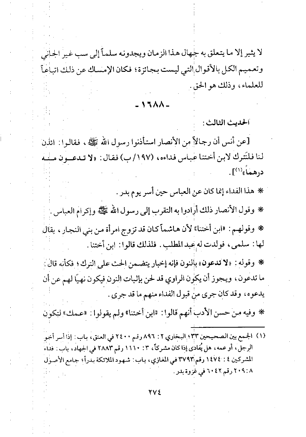 متكئ بين ظهرانيهم، فقلنا: هذا الرجل الأبيض المتكئ، فقال له: ابن عبد المطلب؟ فقال له النبي - صلى الله عليه وسلم -: (قد أجبتك). فقال له الرجل: إني سائلك فمشدد عليك في المسألة، فلا تجد علي في نفسك، فقال: (سل عما بدا لك). فقال: أسألك بربك ورب من قبلك، آلله أرسلك إلى الناس كلهم؟ قال: (اللهم نعم). قال: أنشدك بالله، آلله أمرك أن تصلي الصلوات الخمس في اليوم والليلة؟ قال: (اللهم نعم)، قال: أنشدك بالله، آلله أمرك أن تصوم هذا الشهر من السنة؟ قال: (اللهم نعم) قال: أنشدك بالله، آلله أمرك أن تأخذ الصدقة من أغنيائنا فتقسمها على فقرائنا؟ فقال النبي - صلى الله عليه وسلم -: (اللهم نعم)، فقال (196/ب) الرجل: آمنت بما جئت به، وأنا رسول من ورائي من قومي، وأنا ضمام بن ثعلبة، أخو بني سعد ابن بكر).