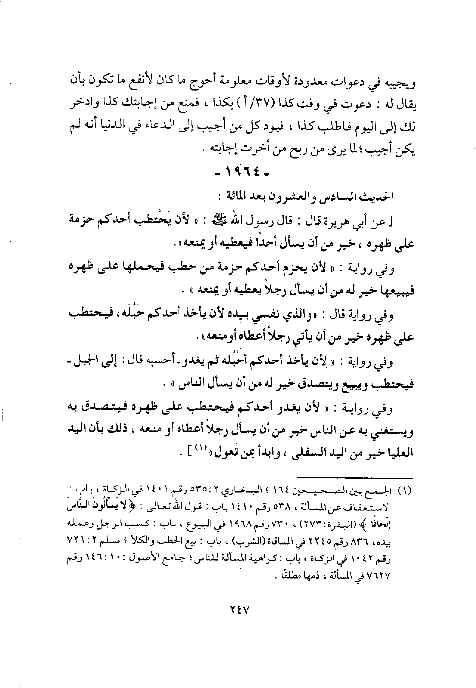 [عن أبي هريرة أن النبي - صلى الله عليه وسلم - قال: (إذا استيقظ أحدكم من منامه، فليستنثر ثلاث مرات؛ فإن الشيطان يبيت على خياشيمه)].