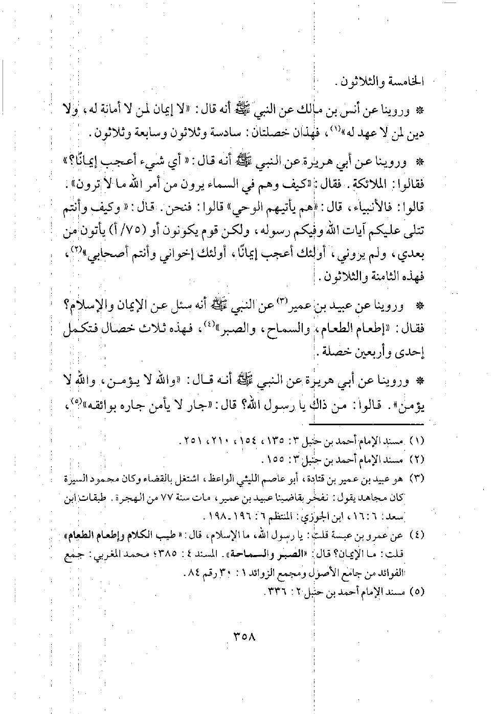 ونحن الآن نتلوه ببقية الأحاديث محذوفة الأسانيد إلا من أسماء رواتها رضي الله عنهم، حتى نأتي على آخرها إن شاء الله، ثم نتبع ذلك بذكر خصلة خصلة منها، مشيرين فيها إلى نبذة من عملها الذي يناسب الإيمان، على أنها جميعها إنما تتشعب عن الإيمان، الذي هو التصديق، فهو على نحو عين تتشعب عنها شعب، يكون انبعاث كل شعبة عنها، فهي تمده وتبعثه، وهو يدل عليها، ويفصح عنها، وذلك كله دليل قاطع على أن الإيمان قول وعمل ونية.