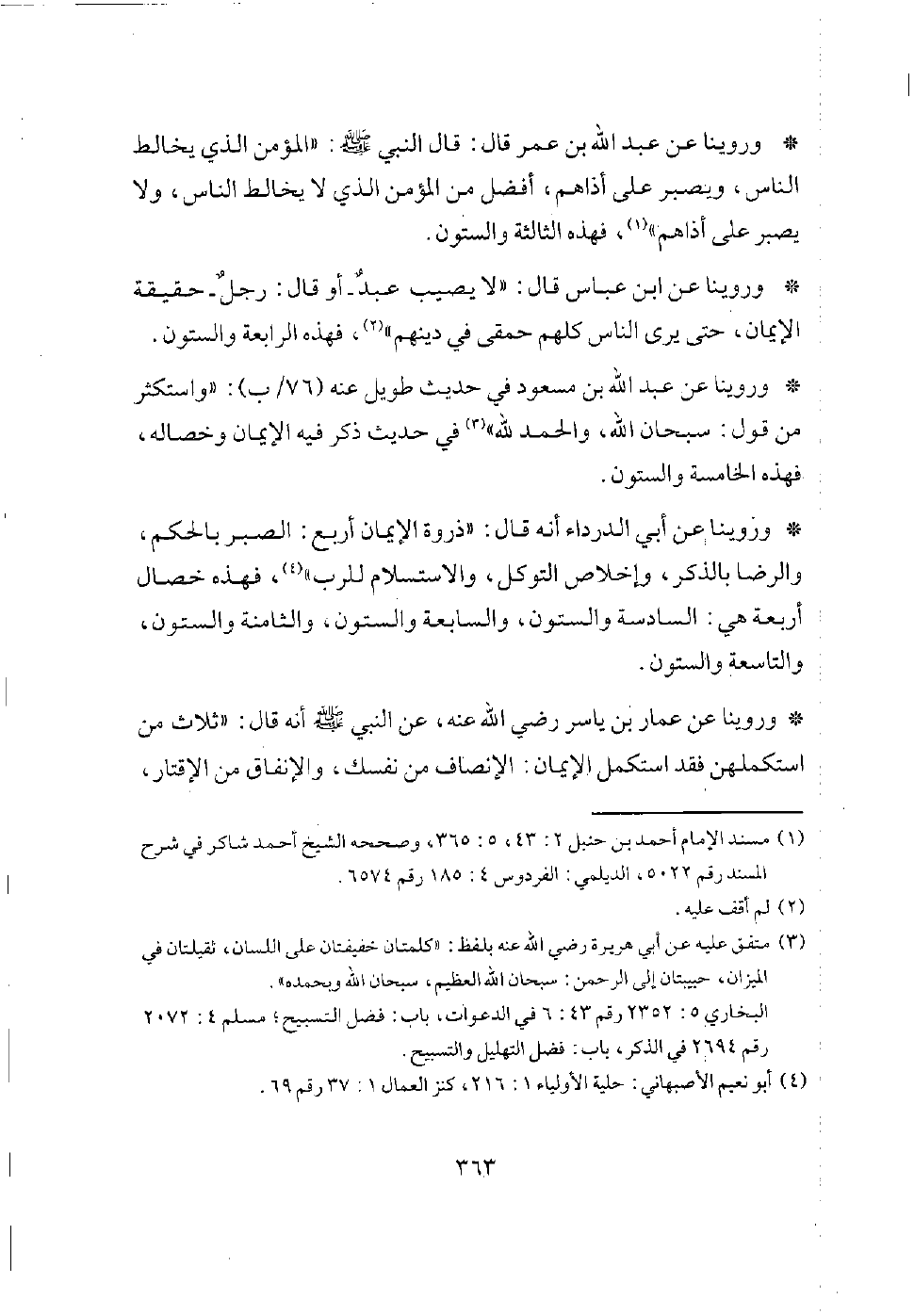 * وروينا عن أبي سعيد الخدري عن النبي - صلى الله عليه وسلم - أنه قال: (إذا رأيتم الرجل يعتاد المسجد، فاشهدوا له بالإيمان)، قال الله تعالى: {إنما يعمر مساجد الله من آمن بالله واليوم الآخر})، فهذه الرابعة والأربعون.