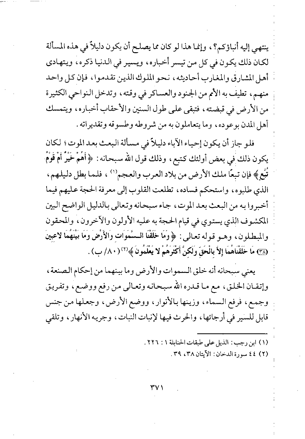 وهذه الخصلة فهي القرحة التي تغلب في صدور المشركين، فيها كفر من كفر من المغضوب عليه والضالين، ولذلك كرر الله سبحانه الدلائل عليها، وكثر البراهين فيها، حتى إنه سبحانه وتعالى جعل نصف زمان الآدمي على التقريب موتًا، ونصفه بعثًا؛ ليكون مستدلًا بنومه على موته، وبيقظته على بعثه عند ممسى كل يوم ومصبحه، وإقبال كل ليل وانقضائه، فهذا بعث بعد موت يراه الآدمي في كل ليلة ويوم.