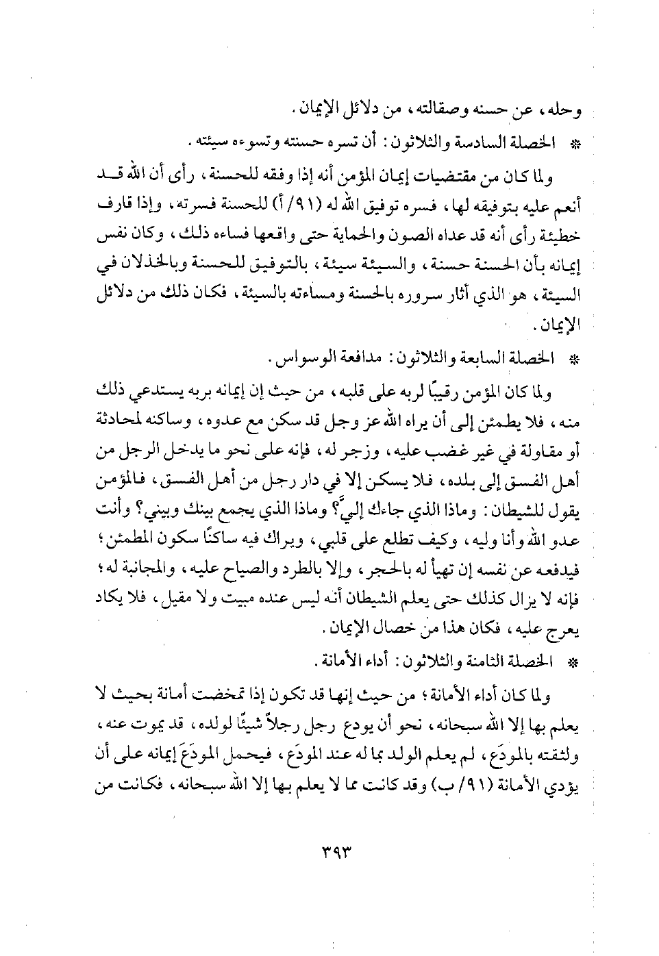 ولما كان الطهور مما يدخل فيه الغسل من الجنابة، وهي أمانة، والاحتراز من الأحداث التي تنقض الطهارة من الخارج من السبيلين، ولمس النساء لشهوة وغير ذلك، وإنها كلها على سبيل الأمانة عند العبد، لم يكن على العبد فيها (89/ أ) رقيب غير إيمانه، فمن أدى طهارته بكمالها، وحافظ عليها، كان ذلك من دلائل إيمانه.