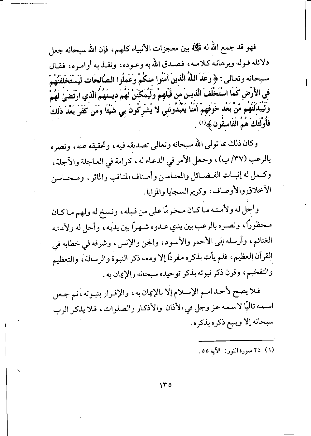 * فولد عبد الله بن عبد المطلب: أبا القاسم محمدًا رسول الله - صلى الله عليه وسلم -، سيد ولد آدم - صلى الله عليه وسلم -. وخاتم النبيين - صلى الله عليه وسلم -، والمصطفى من الخلق أجمعين؛ الذي أرسله الله تعالى رحمة للعالمين، وأنقذ به من الضلالة، وبصر به من الجهالة، فهو الذي أنارت به الأرض، وهو سيد ولد آدم، وما ولد تحت لوائه إلي يوم القيامة،
