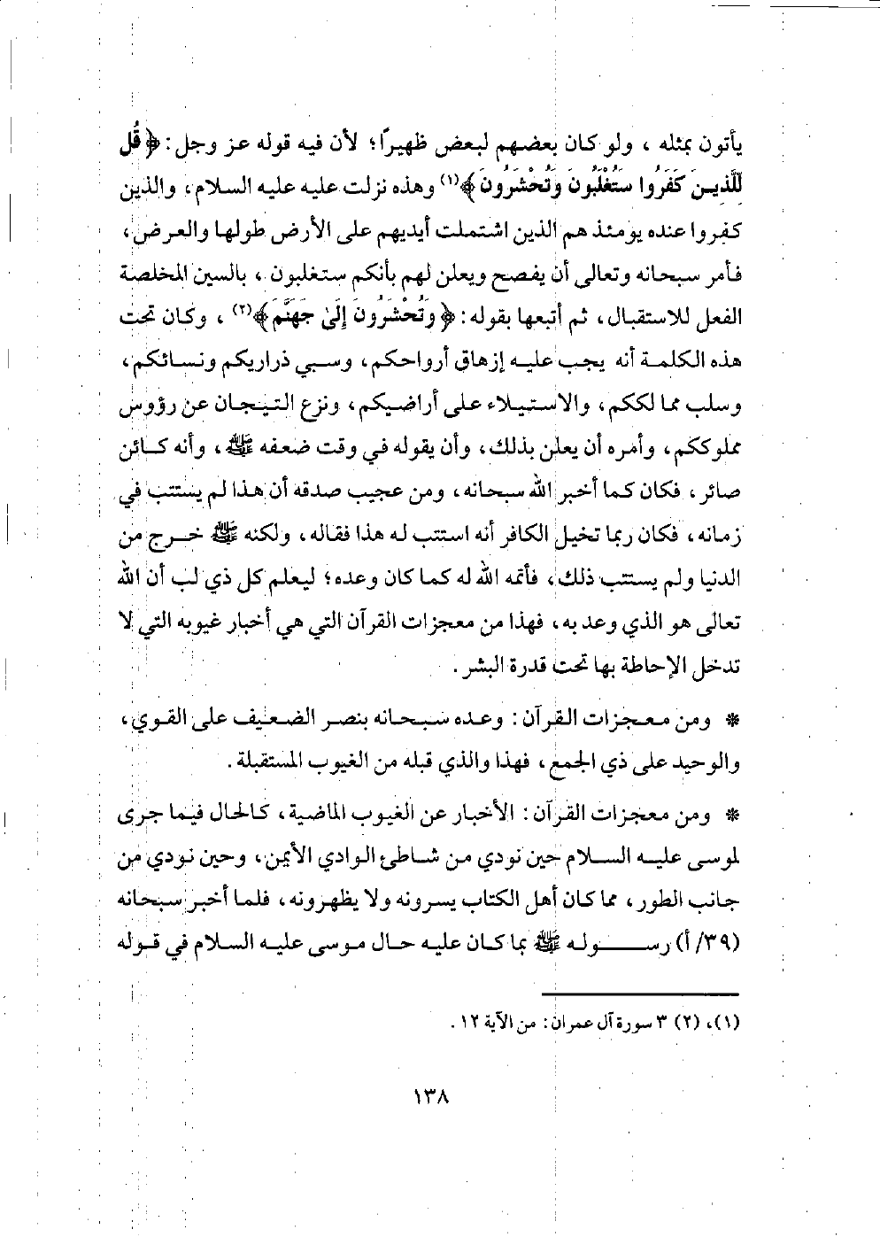فأما من حيث ظهور عجزهم؛ فإنه قد بان لعوام الناس من أنه لما مضى على إنزاله ما مضى من السنين، ولم يقدر أحد على أن يأتي بمثله مع تحديهم به، التحدي الذي ظهر وانتشر، ودعاهم وهم بلغاء الناس منذ بعثه الله عز وجل وجزيرة العرب يومئذ مملوءة بالآلاف منهم، ومن جاء بعده منهم عليه السلام في أقطار المشارق والمغارب. قرنًا فقرنًا إلى وقتنا هذا منذ خمسمائة سنة (38/أ) ونيف وخمسين عامًا من هجرته - صلى الله عليه وسلم -.