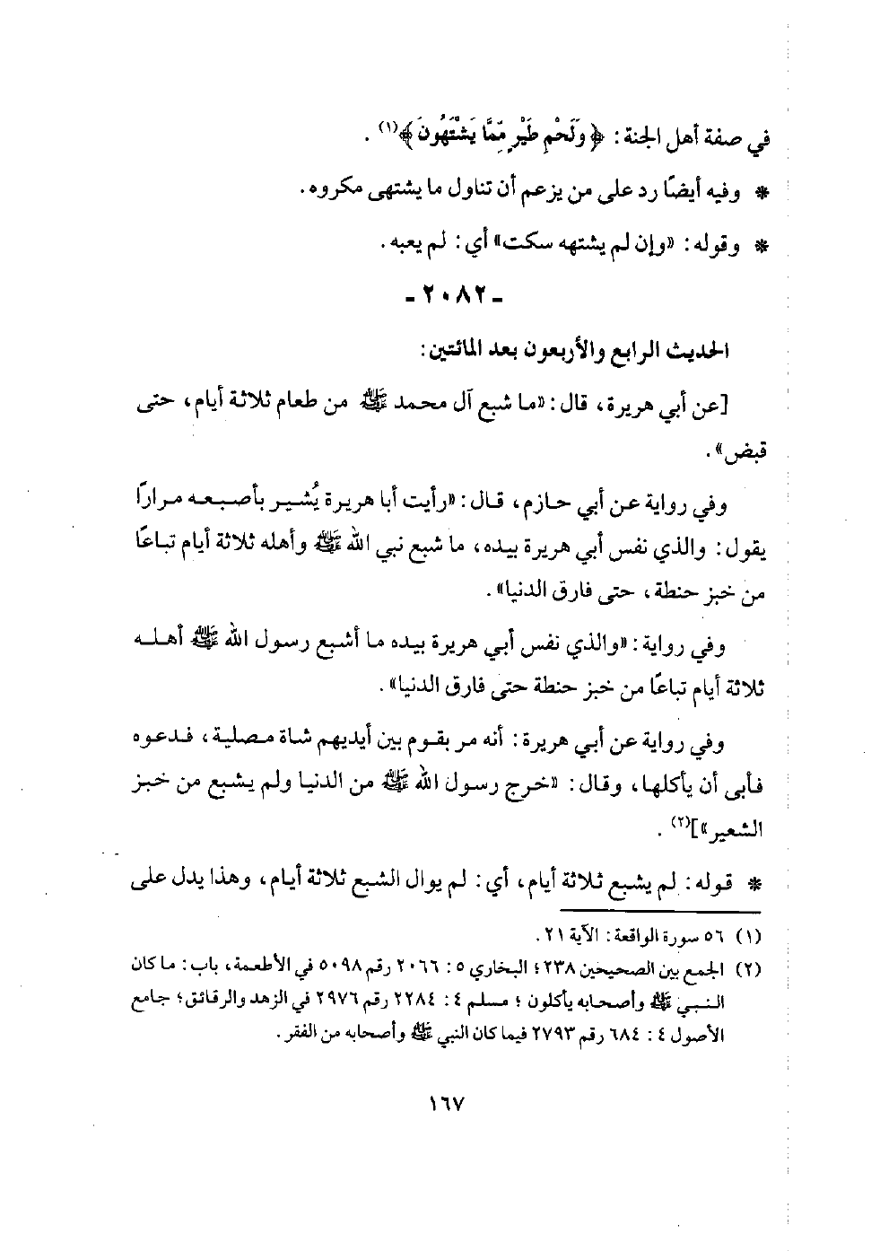 [عن أبي هريرة قال: (ما عاب رسول الله - صلى الله عليه وسلم - طعامًا قط، كان إذا اشتهى شيئًا أكله، وإذا كرهه تركه).