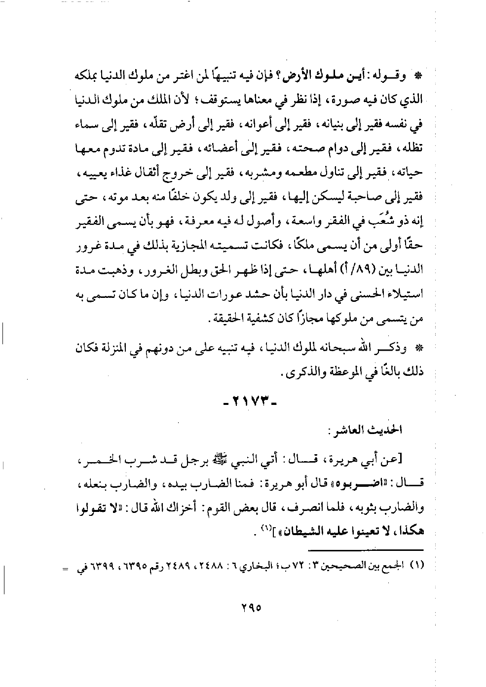 وقول النبي - صلى الله عليه وسلم -: (لقد تحجرت واسعًا)، (88/ ب) أي: تحجرت تحجرًا واسعًا على فضل الله سبحانه وجوده، وقلت ما ليس لك قوله، وسألت ما لا يحسن سؤاله، فإن السيول الدوافع قد تكف، والبحور الزواخر قد تغيض، والغيوث الهوامع قد تقلع، وفضل الله عز وجل وجوده على خلقه لا يكف، ولا يغيض، ولا يقلع أبدًا.