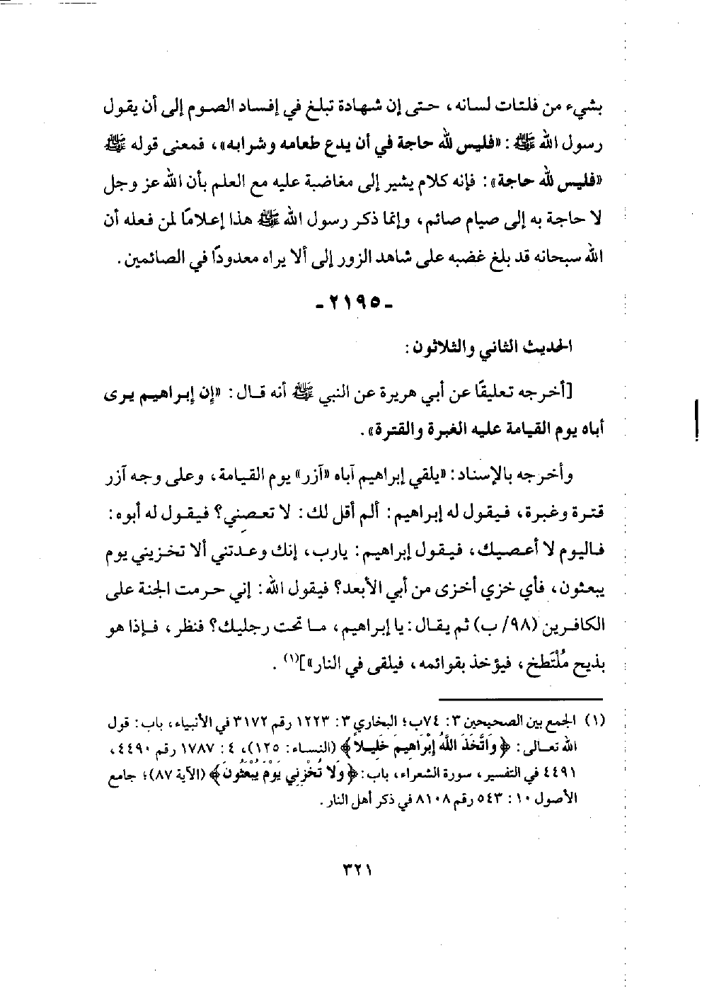 ] عن أبي هريرة، أن النبي - صلى الله عليه وسلم - قال: (أول من يدعى يوم القيامة: آدم عليه السلام، فتراءي ذريته، فيقال: هذا أبوكم آدم؟ فيقول: لبيك وسعديك، فيقول: أخرج بعث جهنم من ذريتك، فيقول: يارب، كم أخرج؟ فيقول: أخرج من كل مائة تسعة وتسعين، فقالوا: يا رسول الله، إذا