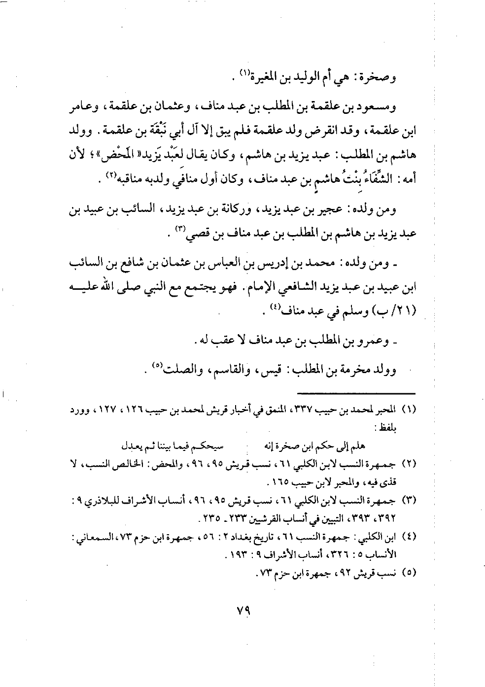* ويلقى رسول الله - صلى الله عليه وسلم - عند عبد مناف أولا المطلب بن عبد مناف: أبو رهم الأكبر، وأبو رهم الأصغر ابنا المطلب، (21/أ) لا عقب لهما، وحارث ابن المطلب، وهاشم بن المطلب، وأبو عمرو بن المطلب، وعباد، والحارث، وأبو شمران ومحصن، وعلقمة، وعمرو: بنو المطلب بن عبد مناف.