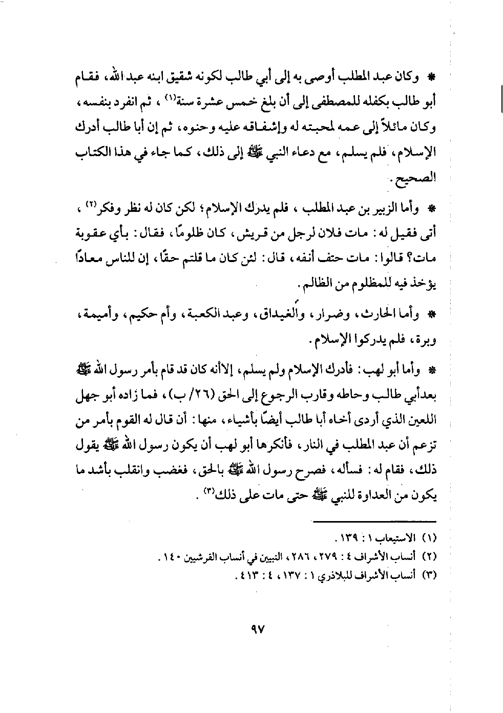 فهذا إما يعود إلى ذكر الإسلام من أسلم من ولد عبد المطلب ومن لم يسلم ملخصًا استيعابه وتجويده، فهو خواص أخبارهم.