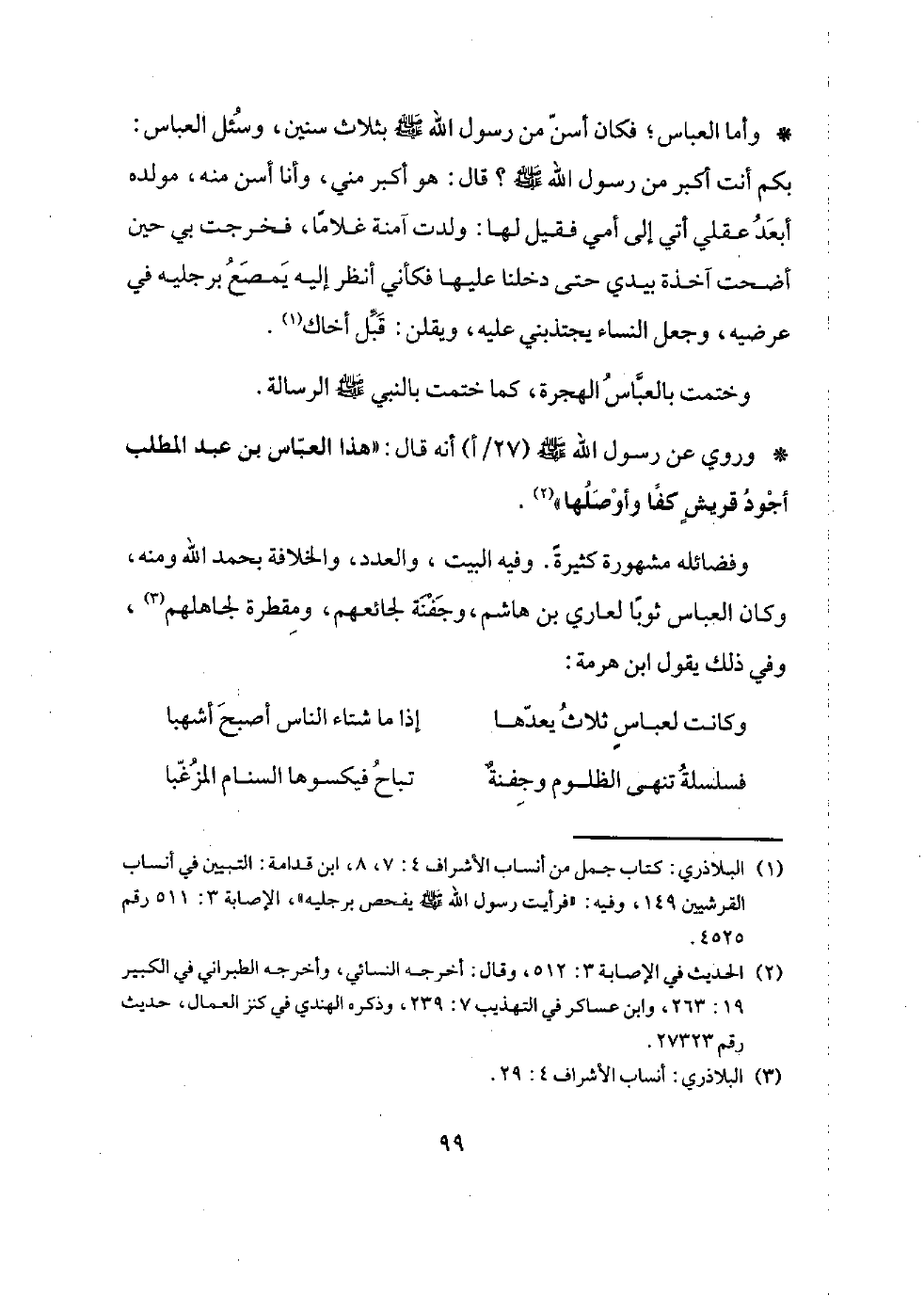 * وكان عبد المطلب أوصى به إلى أبي طالب لكونه شقيق ابنه عبد الله، فقام أبو طالب بكفله للمصطفى إلى أن بلغ خمس عشرة سنة، ثم انفرد بنفسه، وكان مائلًا إلى عمه لمحبته له وإشفاقه عليه وحنوه، ثم إن أبا طالب أدرك الإسلام، فلم يسلم، مع دعاء النبي - صلى الله عليه وسلم - إلى ذلك، كما جاء في هذا الكتاب الصحيح.