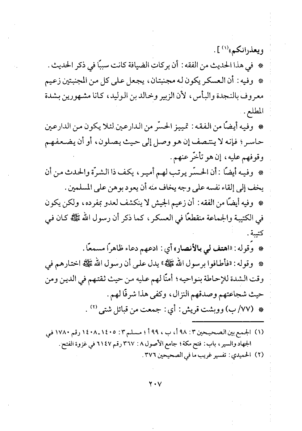 فقال: (يا أبا هريرة، ادع لي الأنصار) فدعوتهم، فجعلوا يهولون، فقال: يا معشر الأنصار: هل ترون أوباش قريش؟ قالوا: نعم. قال: (انظروا إذا لقيتموهم غدا: أن تحصدوهم حصدا) وأخفى بيده، ووضع يمينه على شماله، وقال: (موعدكم الصفا).