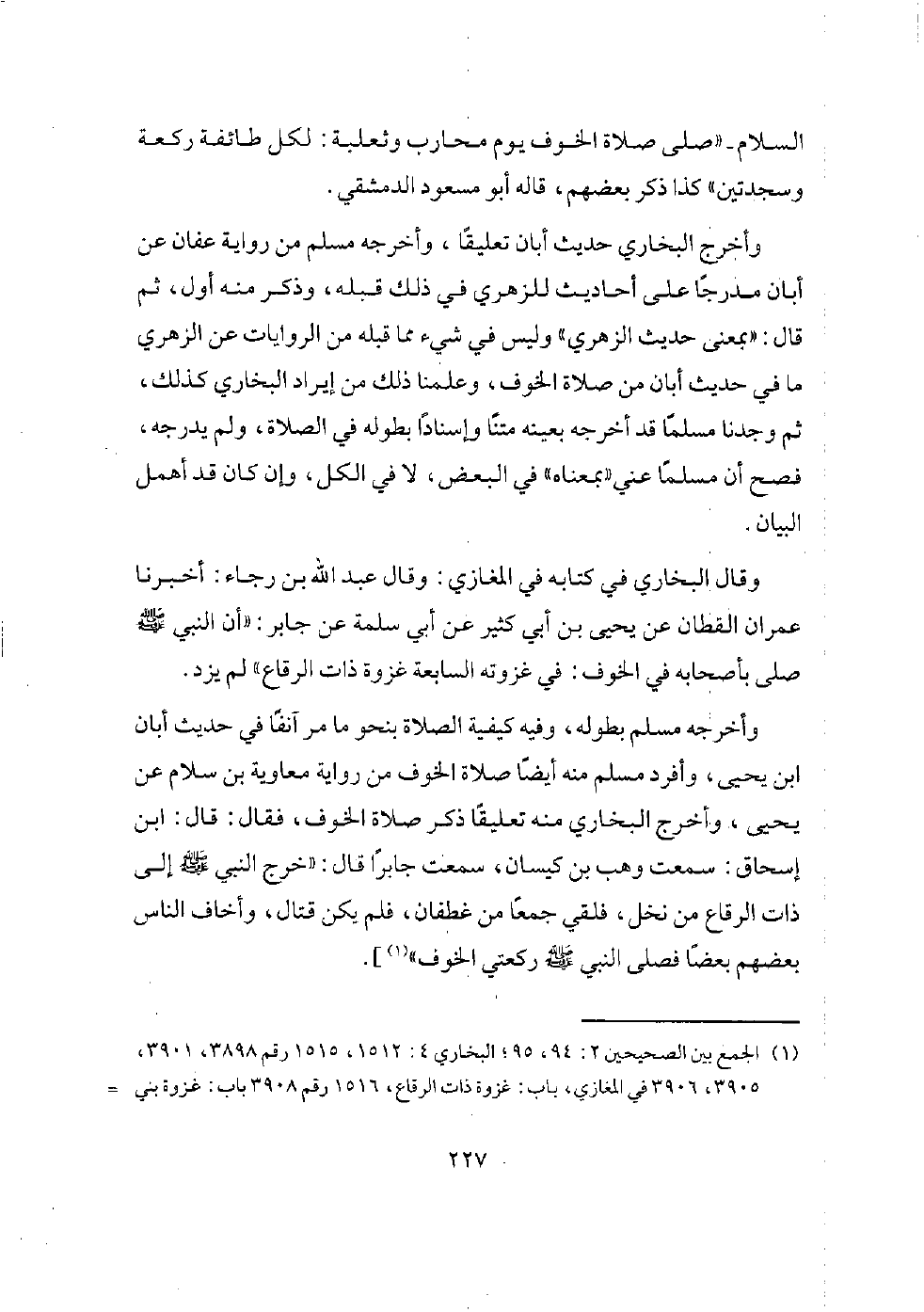 وقال البخاري: وقال بكر بن سوادة: حدثني زياد بن نافع، عن أبي موسى - وهو موسى بن علي - أن جابرا حدثهم قال: (صلى النبي - صلى الله عليه وسلم - يوم محارب وثعلبة) لم يزد البخاري على هذا، حذف المتن، وهو أنه - عليه