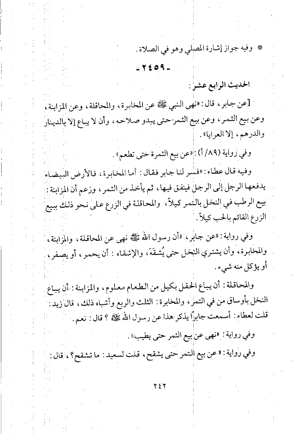 وفي رواية: (أرسلني رسول الله - صلى الله عليه وسلم - وهو منطلق إلى بني المصطلق، فأتيته وهو يصلي على بعيره، فكلمته، فقال لي بيده هكذا وأومأ زهير بيده، ثم كلمته، فقال لي هكذا - وأومأ زهير بيده نحو الأرض - وأنا أسمعه يقرأ، يومئ برأسه، فلما فرغ قال: (ما فعلت في الذي أرسلتك له؟ فإنه لم يمنعني أن أكلمك إلا أني كنت صلي)].