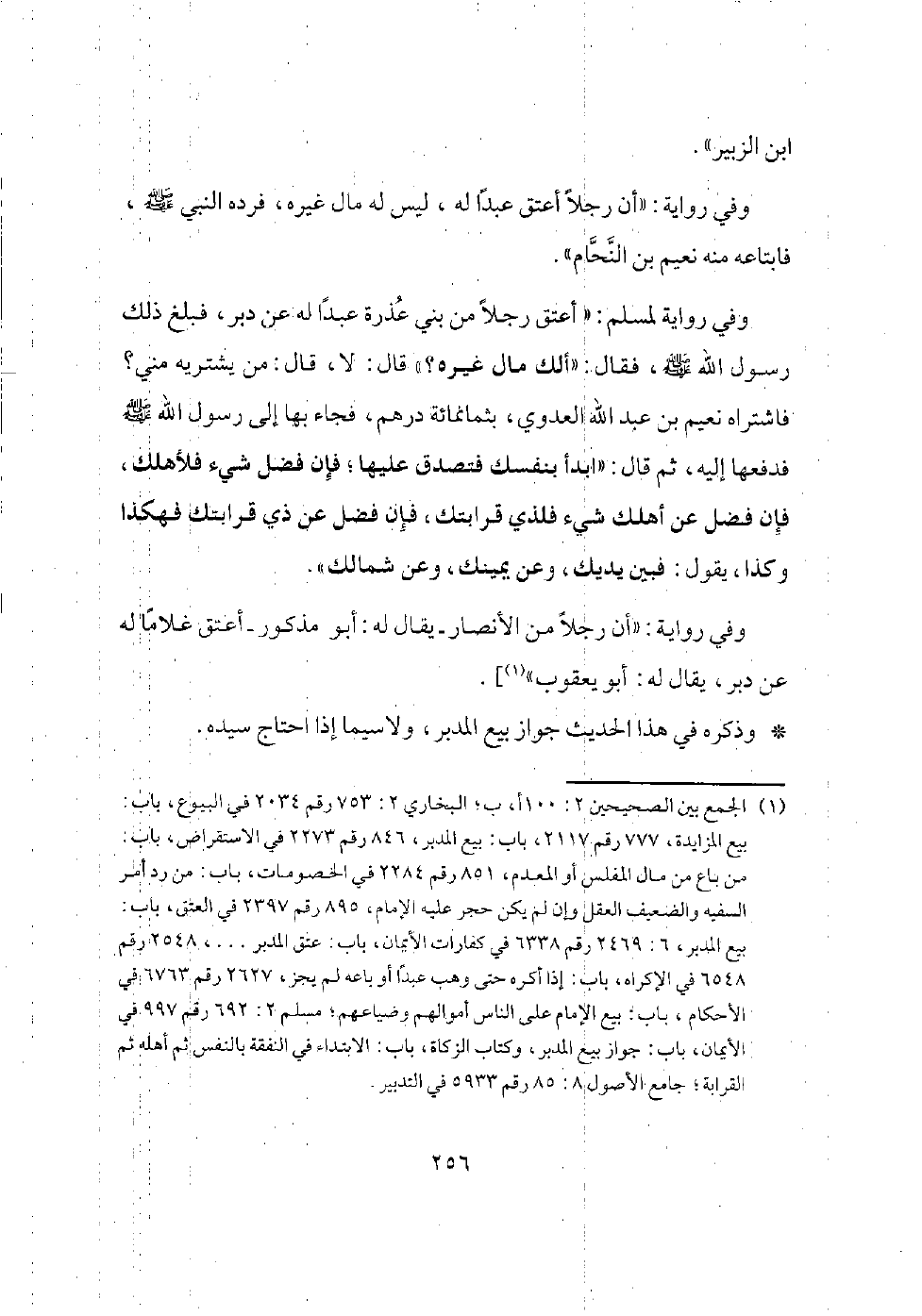 وفي رواية: (دبر رجل من الأنصار غلاما له، لم يكن له مال غيره، فباعه رسول الله - صلى الله عليه وسلم -، فاشتراه ابن النحام عبدا قبطيا، مات عام الأول في إمارة