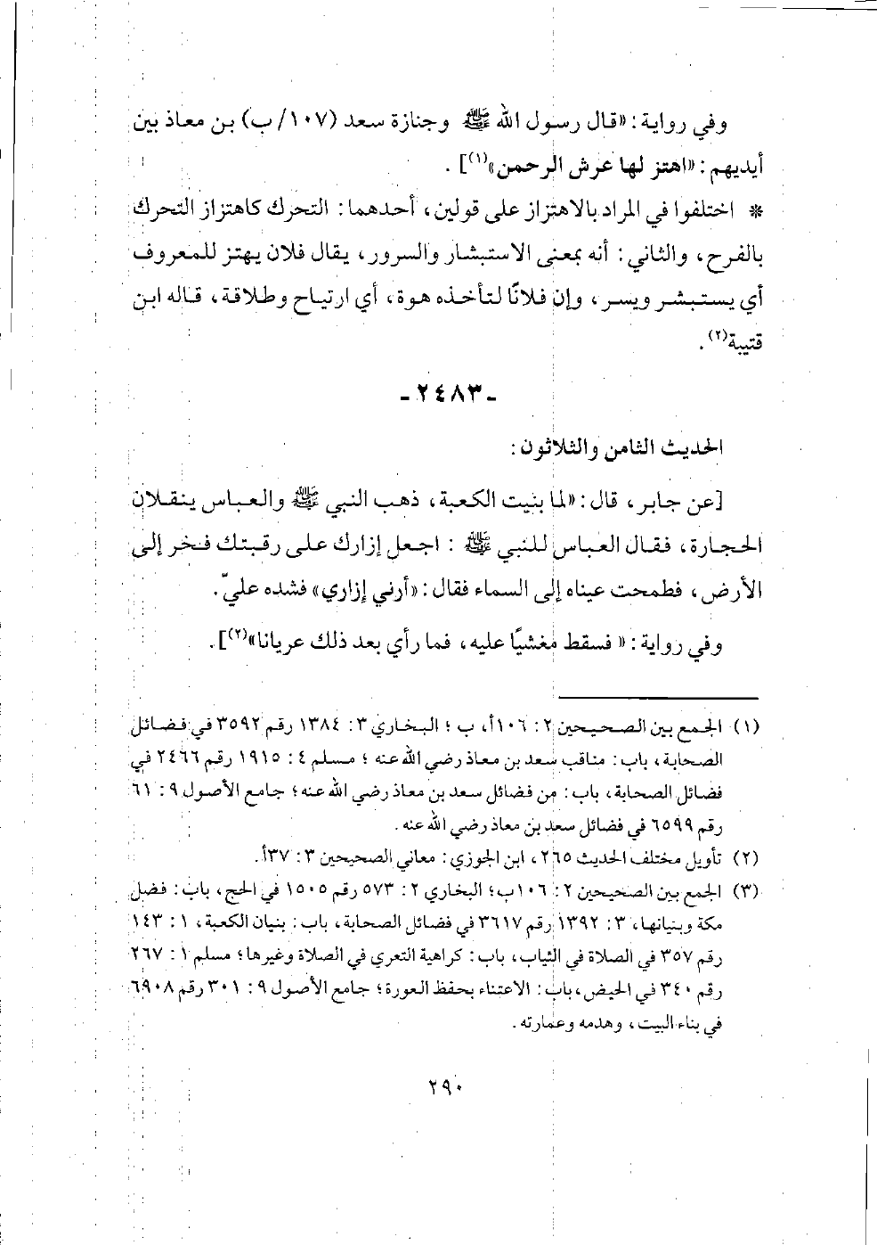 [عن جابر، عن النبي - صلى الله عليه وسلم - قال: (اهتز العرش لموت سعد بن معاذ)، زاد البخاري في رواية: فقال رجل لجابر: (فإن البراء يقول اهتز السرير؟ فقال: إنه يقول كان بين هذين الحيين ضغائن، سمعت النبي - صلى الله عليه وسلم - يقول: اهتز عرش الرحمن لموت سعد بن معاذ).